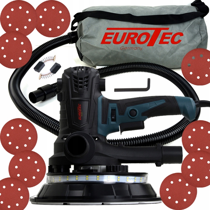 Шліфувальна машина для гіпсової штукатурки від відомого бренду Eurotec Німеччина. Призначений для шліфування стін, стель та інших поверхонь, покритих шпаклівкою. Незамінний для кожного професіонала та любителя, що займається ремонтом інтер'єру. Він ідеально підходить для ремонту будинків, будівельних майданчиків і скрізь, де є необхідність обробити великі і маленькі поверхні. Дуже простий у використанні. Завдяки функції всмоктування пилу в мішок робота відбувається практично без пилу.