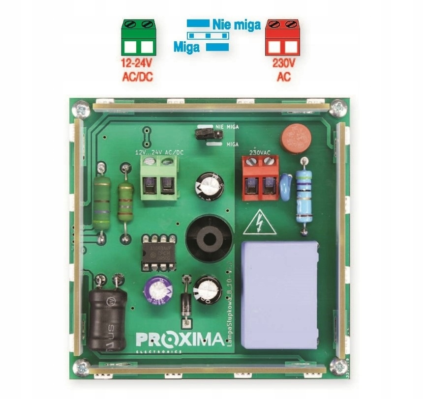 4Сигнальна лампа Proxima відрізняється розширенням, майже не видимого складання у верхній частині стовпа та перемикача, що дозволяє вибрати між безперервною роботою та миготінням частотою 1 Гц.