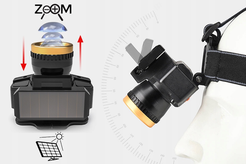 ✅ Налобний ліхтар обладнаний сонячною панеллю, яка заряджає акумулятор без необхідності підключення зарядного пристрою.