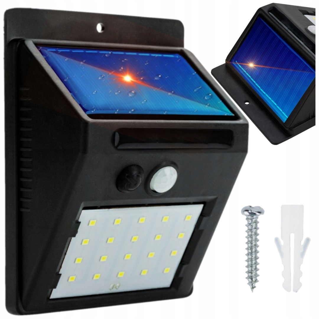 СВІТЛОДІОДНА СОНЯЧНА ЛАМПА ДАТЧИКИ РУХУ І СУТІНКІВ ЗОВНІШНЯ САДОВА 20 LED