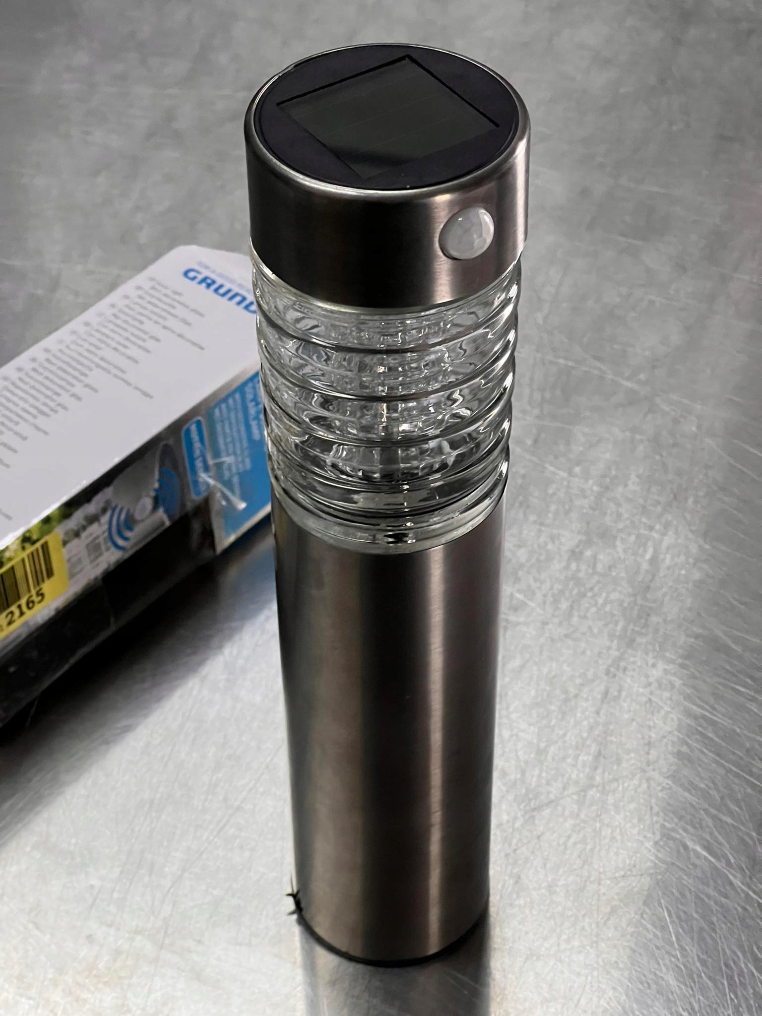 - За допомогою цієї сонячної лампи Grundig, виготовленої з нержавіючої сталі (зі скляним абажуром), ви можете чудово освітлити свій сад.