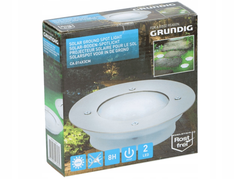 GRUNDIG Solar LED наземний світильник, нержавіюча сталь, діаметр 14 см, сріблястий