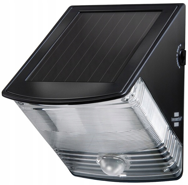 Світлодіодний настінний світильник SOL 04 plus на сонячних батареях з IP44 інфрачервоний датчик руху Brennenstuhl - це світлодіодна лампа з вбудованим сонячним модулем, а також інфрачервоний датчик руху. Датчик охоплює кут приблизно 100° і максимальний діапазон 7 метрів. Він може працювати незалежно від електромережі та вмикається автоматично при вході в зону виявлення.