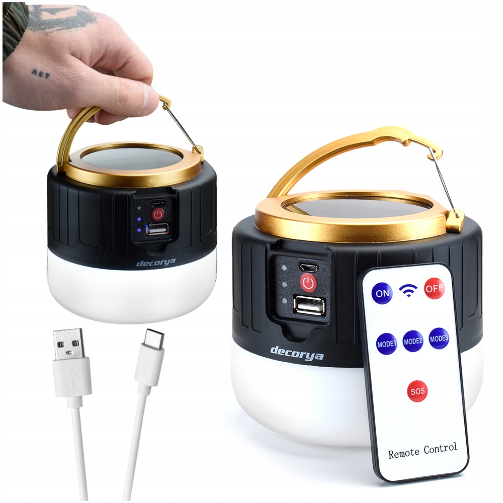 🏕️ Туристичний світлодіодний світильник із павербанком, пультом дистанційного керування та сонячною панеллю від Decorya