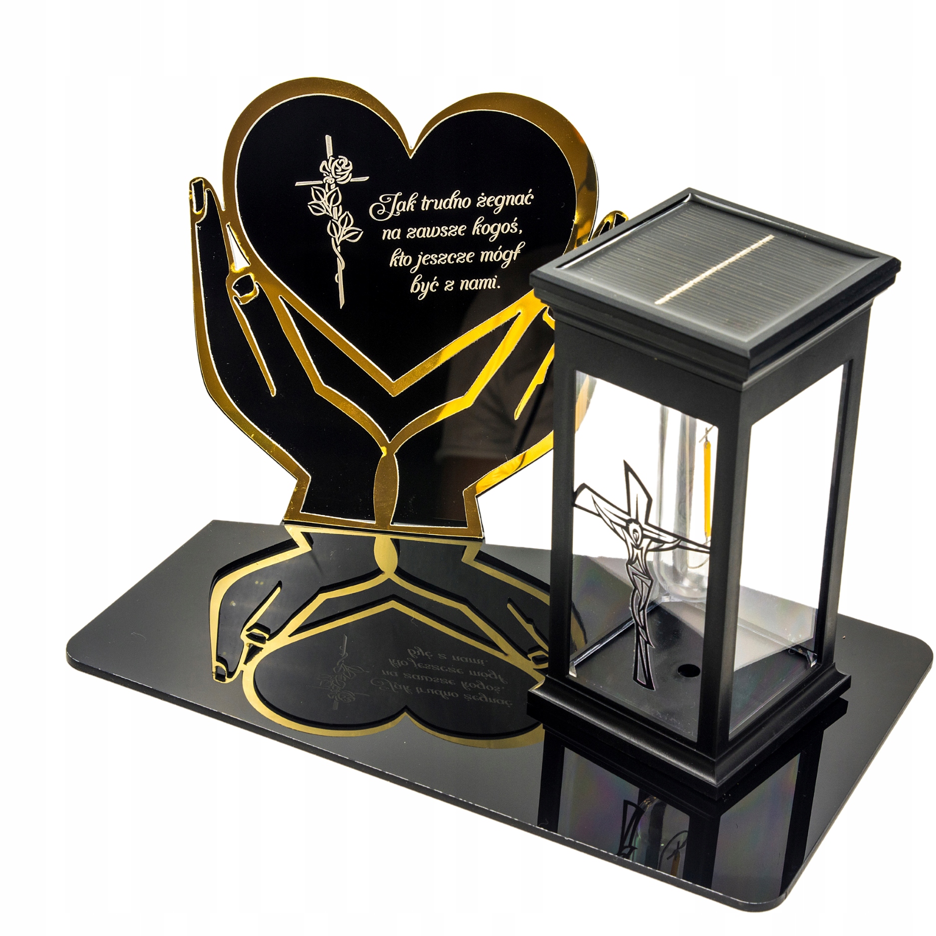 ВІЧНА СОНЯЧНА ГРАВІЙНА СВІЧКА З ГРАВІЮВАННЯМ АКРИЛОВОГО СКЛА ПІДСТАВКА, ПРИКРОШЕНА МОТИВОМ ЗОЛОТИХ РУК ІЗ СЕРЦЕМ