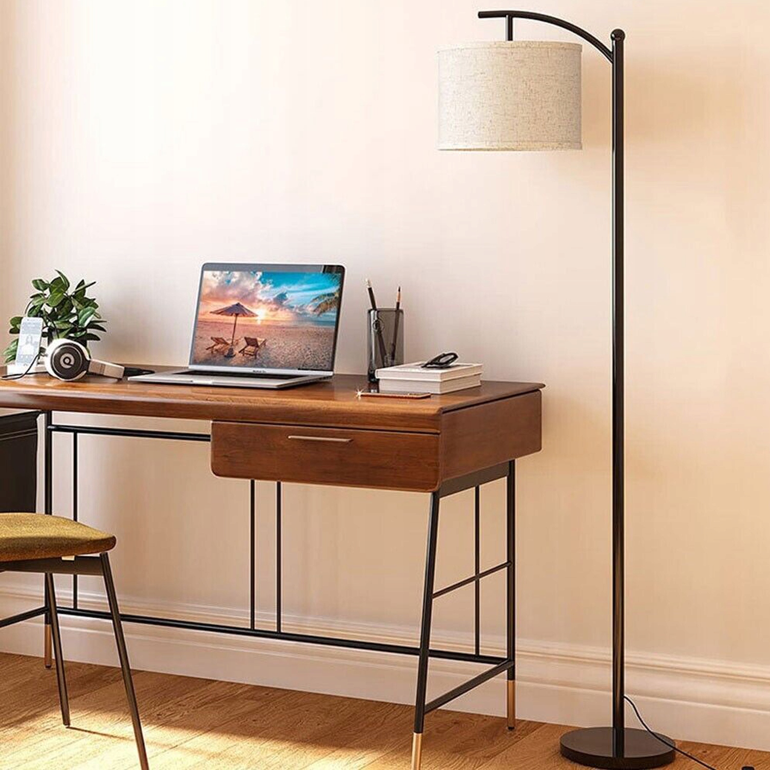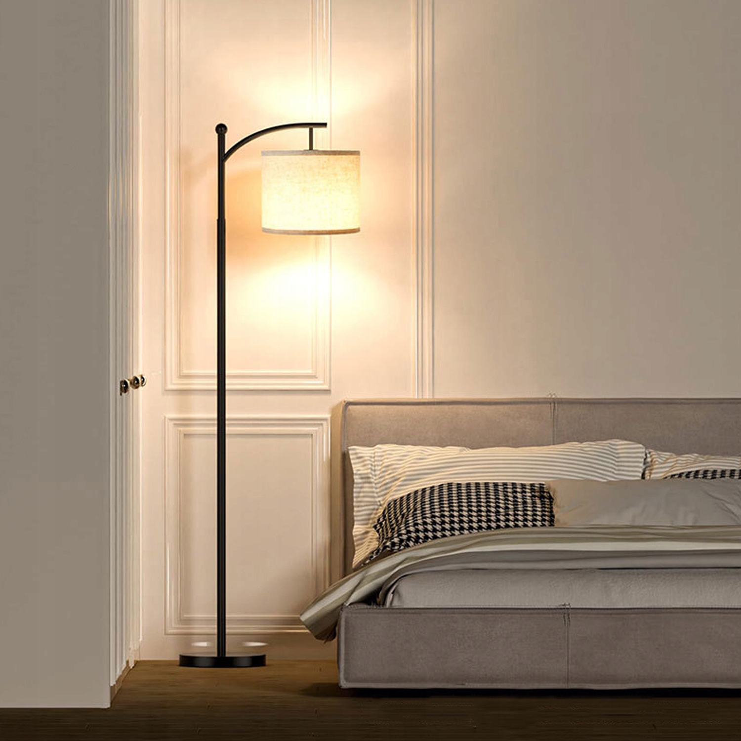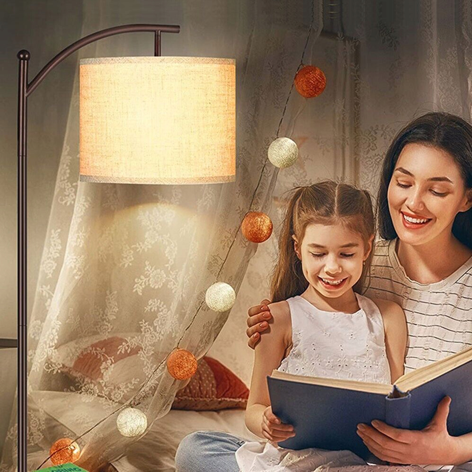 Торшер випромінює м'яке і тепле світло через атласний абажур, який запобігає тривалій втомі очей і створює приємну атмосферу в кімнаті, дозволяючи комфортно читати і спати.