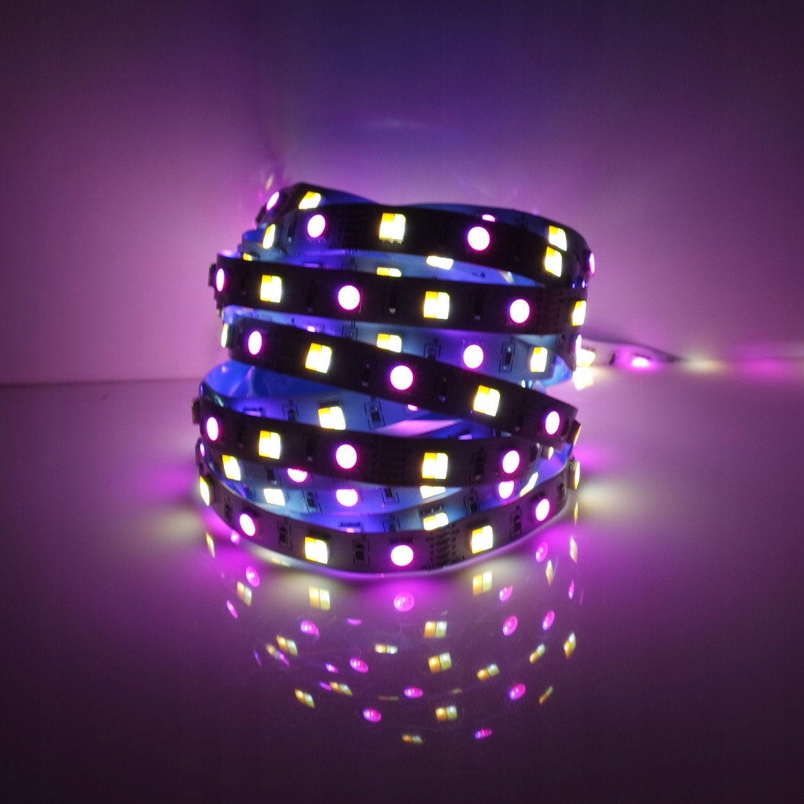- при довжині 1 м, він має 60 світлодіодів, 30 5050 SMD RGB світлодіодів і 30 5050 SMD світлодіодівCCT, розміщених по черзі, з до 300 світлодіодів на 5-метрова смуга