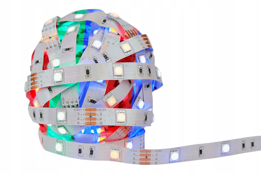 Барвиста світлодіодна стрічка RGB світити будь-яким кольором - червоним, синім, зеленим, сумішшю цих кольорів і білим. Помістивши 3 світлодіоди RGB в один корпус, ми отримуємо рівномірний колір освітлення. Сучасний чіп LED EPISTAR 5050 з 3 чіпами всередині - яскравіше, ніж стрічки з LED чіпами 3528, 2835.