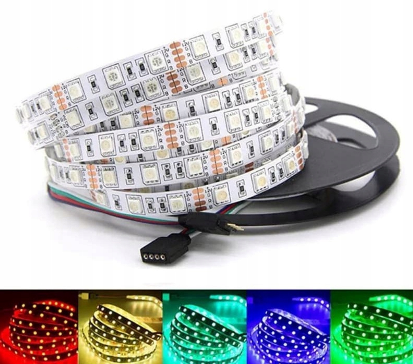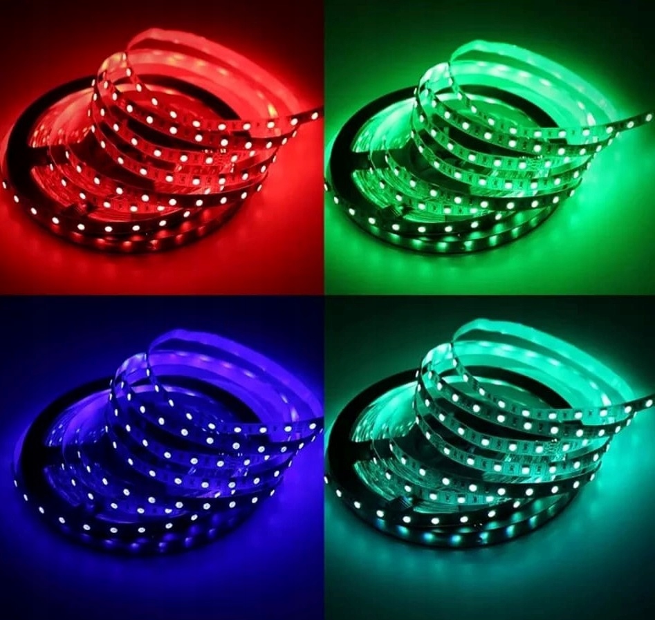 Барвиста світлодіодна стрічка RGB може світитися будь-яким кольором. Як базове світло: червоний, синій, зелений, так і суміш кольорів з палітри RGB і білий. Помістивши 3 світлодіоди RGB в один корпус, ми отримуємо рівномірний колір освітлення. На 1 метрі стрічки розміщено аж 60 діодів, що робить світлодіодну стрічку набагато яскравішою! Товстіша підкладка друкованої плати та інше потужні діоди гарантують найвищу якість!