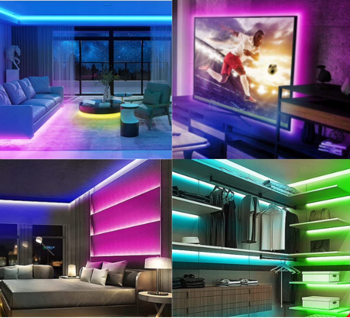 Його широке застосування, це ідеальне освітлення для підвісних стель, меблів, полиць, дзеркал або сходів. Ми також можемо використовувати його для прикраси вікон і вітрин, тому він ідеально підходить як комерційне освітлення. Також ідеально підходить для підсвічування телевізора, комп'ютера (налаштування), робочого столу або дитячої кімнати.