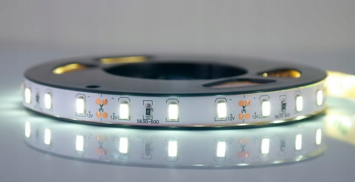 Стрічка 5630 природний білий ультраяскравий має до 300 світлодіодів на 5 м стрічки. Він випереджає чіп 5050, який при тій же потужності світить тьмяніше! Ця стрічка може бути в чотири рази яскравішою порівняно з 2835!