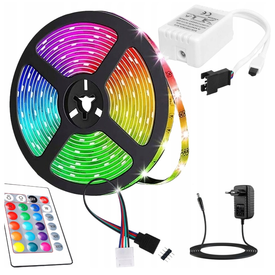 СВІТЛОДІОДНА СТРІЖКА 5M RGB LEDS 5050 STRIP 230v 12v КОЛЬОРОВИЙ ДЛЯ ДИСТАНЦІЙНОГО КЕРУВАННЯ, ВОДОНЕПРОНИКАЛЬНИЙ