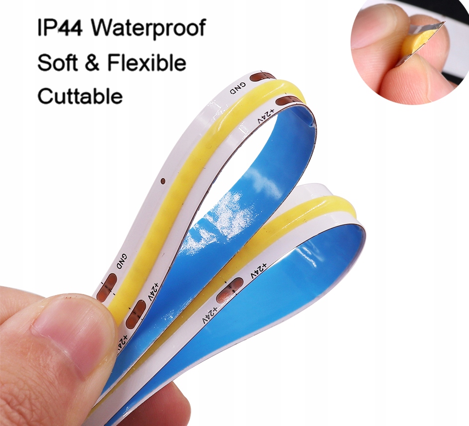 Світлодіодна стрічка COB — це спеціальна світлодіодна стрічка, яка забезпечує неймовірно плавне світло без окремих точок світла. Використовуючи світлодіодну стрічку COB, вам не обов’язково використовувати профіль з опаловим абажуром для отримання рівномірної лінії світла, без окремих світлодіодних точок. Світлодіодна стрічка COB характеризується гнучкістю та універсальністю використання. Ми зможемо використовувати його для освітлення будь-яких типів інтер’єрів, а високий індекс передачі кольору CRI>85 Ra в поєднанні з надзвичайною ефективністю гарантує високоякісне освітлення з природним характером. Використовуючи світлодіодні стрічки на діодній технології COB, завдяки високій щільності чіпів на метро ми відчуємо ефект повної (рівномірної) світлової лінії. Помітні «точки», тобто світлодіоди SMD у смузі, які турбують багатьох власників світлодіодів, більше не будуть проблемою.