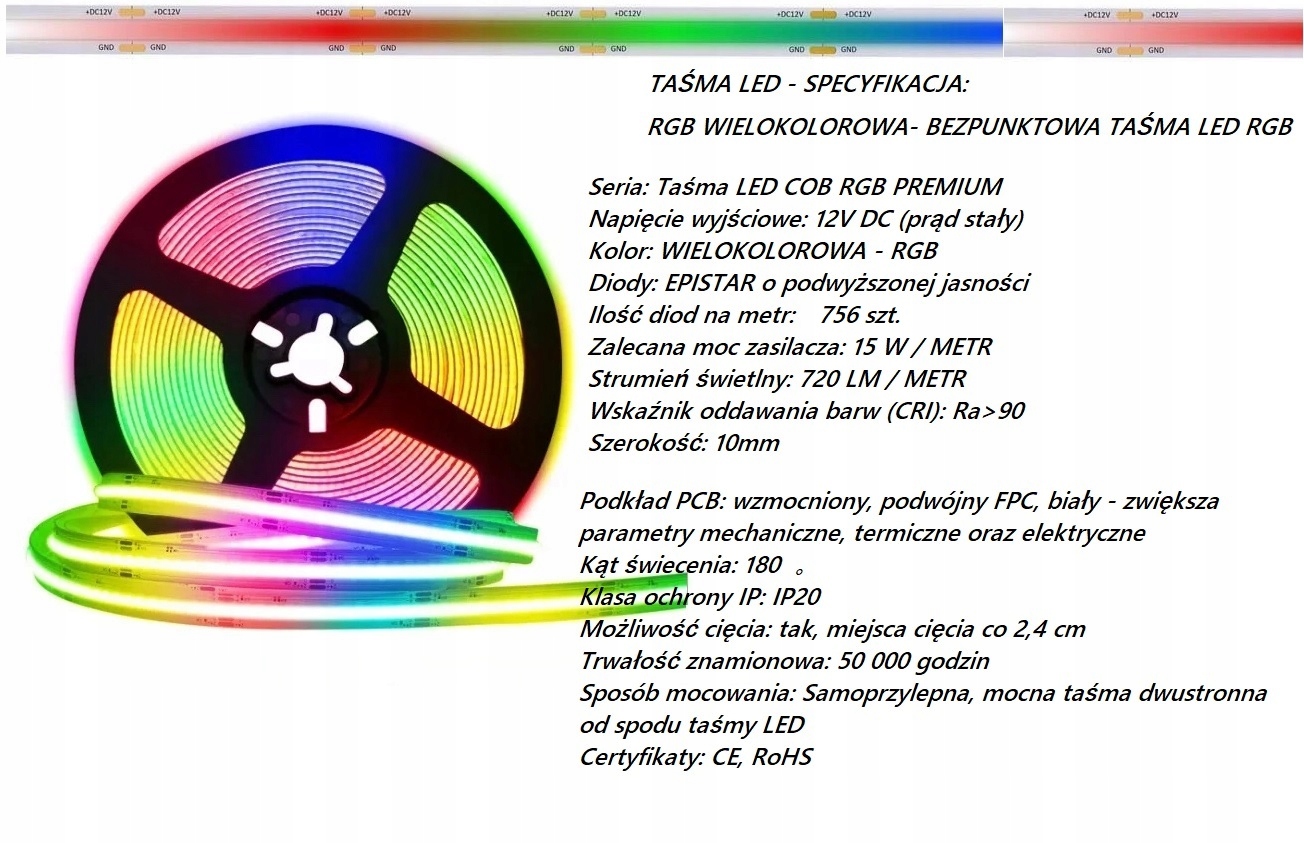 12 В світлодіодна смуга | COB RGB | 756LED | 1 м IP20 |