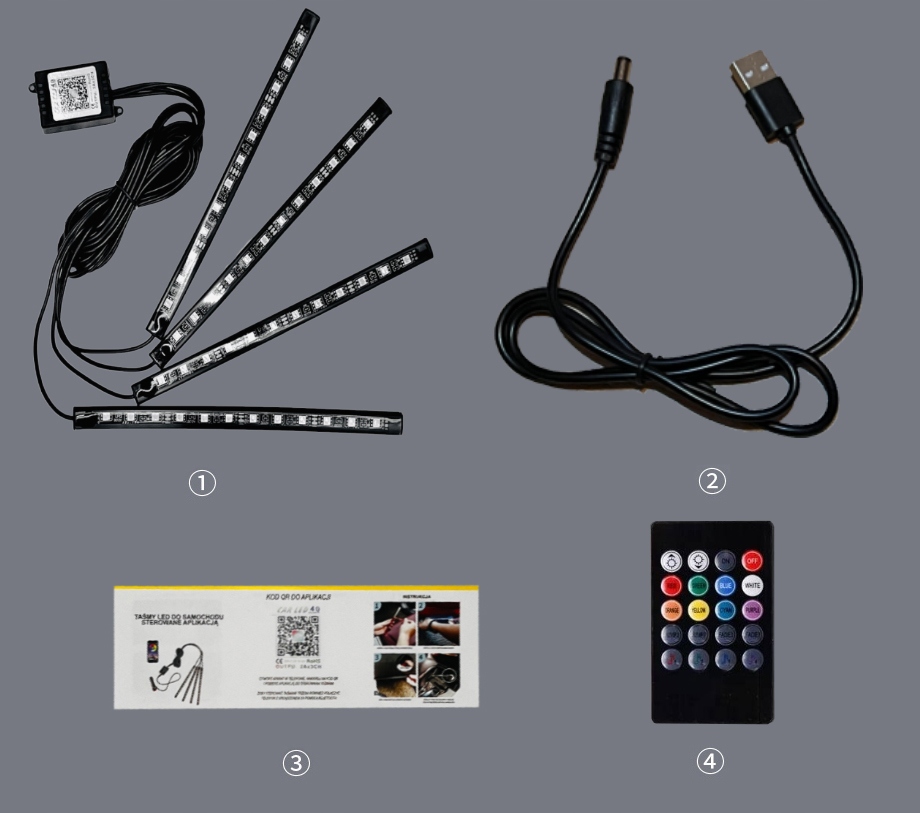 СВІТЛОДІОДНА СТРІЖКА для автомобіля RGB LEDS Cabin Gadgets 4in1 Set USB + REMOTE