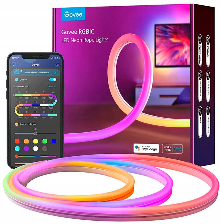 Налаштуйте освітлення на свій смак завдяки інноваційній технології RGBIC. Вбудована мікросхема дозволяє використовувати кілька варіантів кольорів на одній лампі. Кольори, ефекти тощо можна налаштувати за допомогою програми Govee Home.