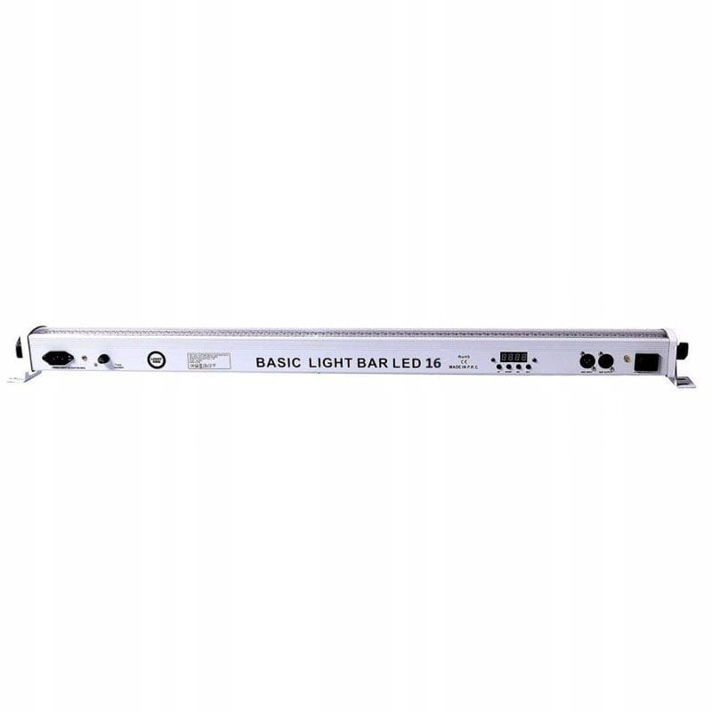 LIGHT4ME BASIC LIGHT BAR LED 16 RGB IR — це сучасна 16-секційна світлодіодна стрічка, оснащена загалом 240 світлодіодами робочого світла в палітрі RGB, якими також можна дистанційно керувати за допомогою бездротового пульта дистанційного керування. Промінь ідеально підходить для сценічного та клубного освітлення, для оформлення світлом весільних залів, приміщень готелів і ресторанів, а також для архітектурного освітлення для підсвічування різних елементів інтер'єру.