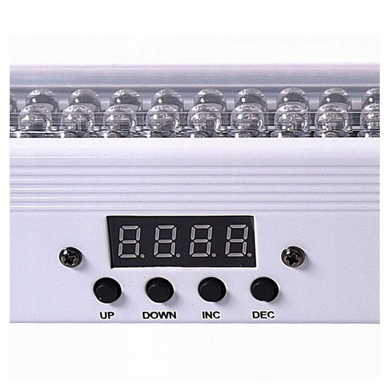 Світлодіодна балка оснащена панеллю управління, що складається з цифрового дисплея та чотирьох кнопок. За допомогою нього ми можемо вибрати статичний колір смуги, який нас цікавить, або один з інших режимів роботи: