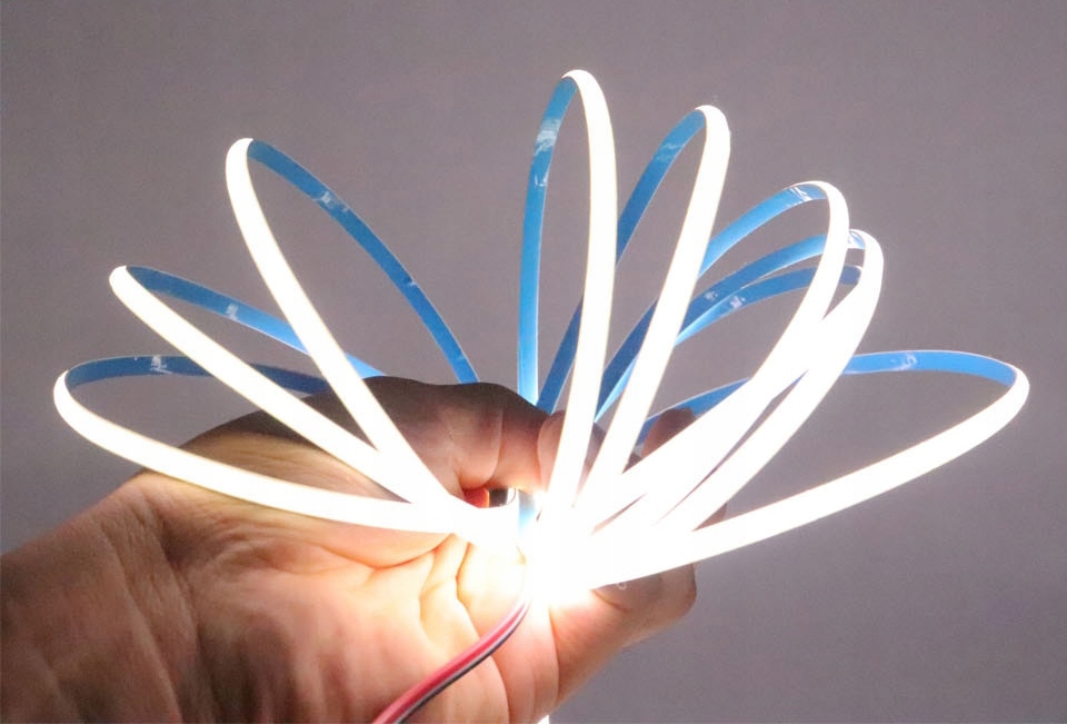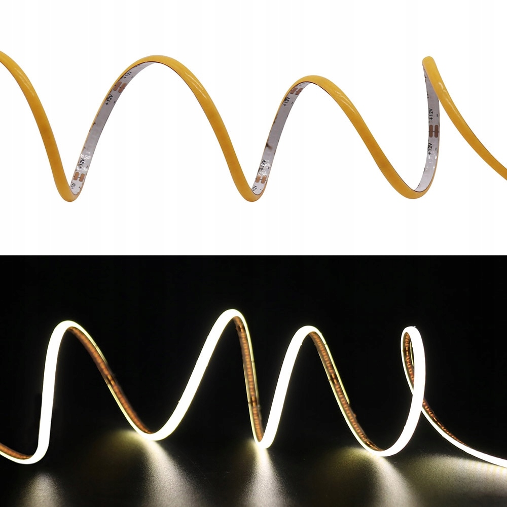 Світлодіодна стрічка COB — це спеціальна світлодіодна стрічка, яка забезпечує неймовірно плавне світло без окремих точок світла. Використовуючи світлодіодну стрічку COB, вам не обов’язково використовувати профіль з опаловим абажуром для отримання рівномірної лінії світла, без окремих світлодіодних точок. Світлодіодна стрічка COB характеризується гнучкістю та універсальністю використання. Ми зможемо використовувати його для освітлення будь-яких типів інтер’єрів, а високий індекс передачі кольору CRI>85 Ra в поєднанні з надзвичайною ефективністю гарантує високоякісне освітлення з природним характером. Використовуючи світлодіодні стрічки на діодній технології COB, завдяки високій щільності чіпів на метро ми відчуємо ефект повної (рівномірної) світлової лінії. Помітні «точки», тобто світлодіоди SMD у смузі, які турбують багатьох власників світлодіодів, більше не будуть проблемою.