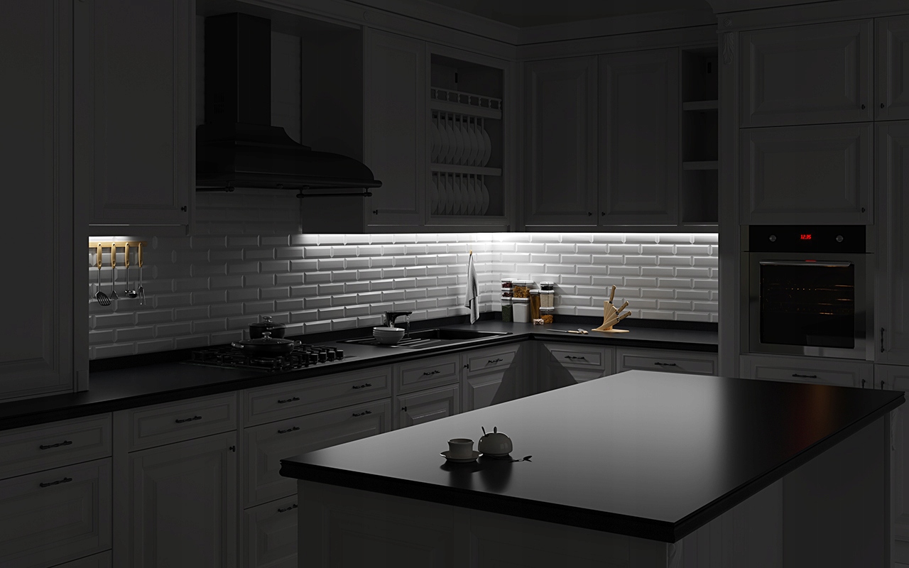 Кутовий світлодіодний світильник ANGLE довжиною 1 метр під шафу — це рішення, яке дуже добре підійде для освітлення кухонних стільниць.