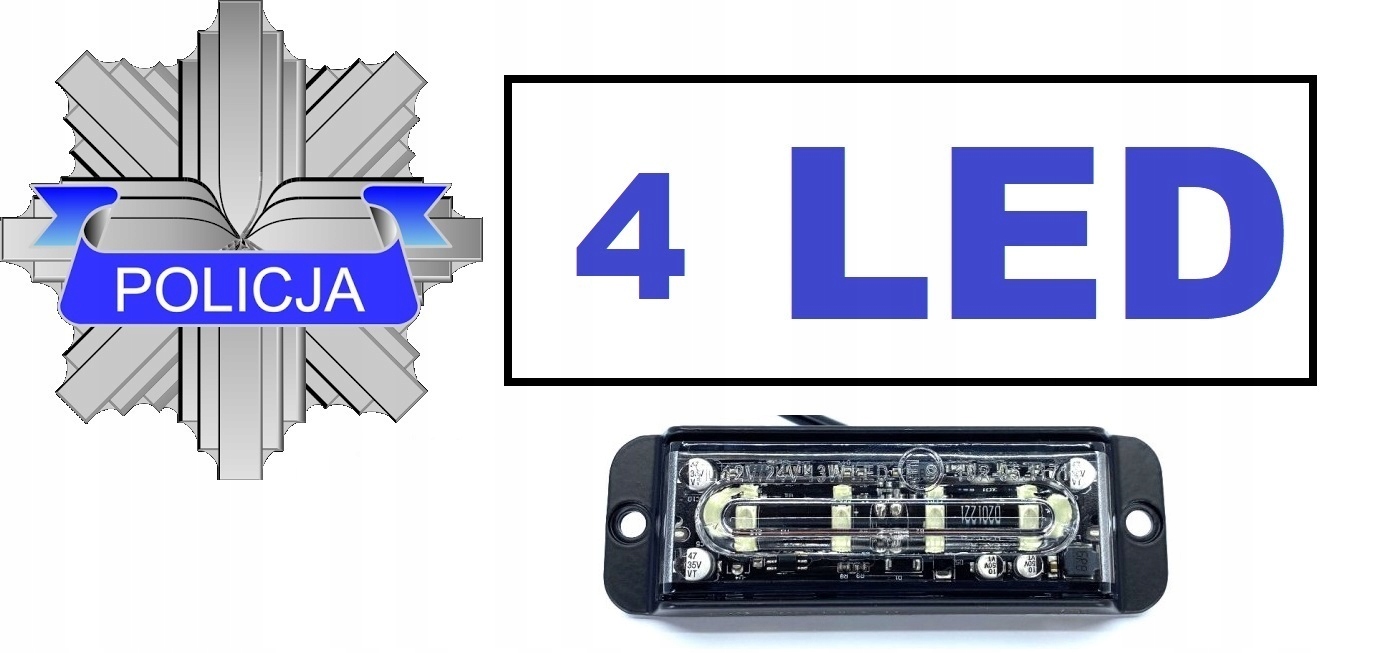 СВІТЛОДІОДНА СТРОБОСКОПНА ЛАМПА 4 СИНЯ ПОЛІЦІЯ 12V Police Guard CBŚP Швидка допомога