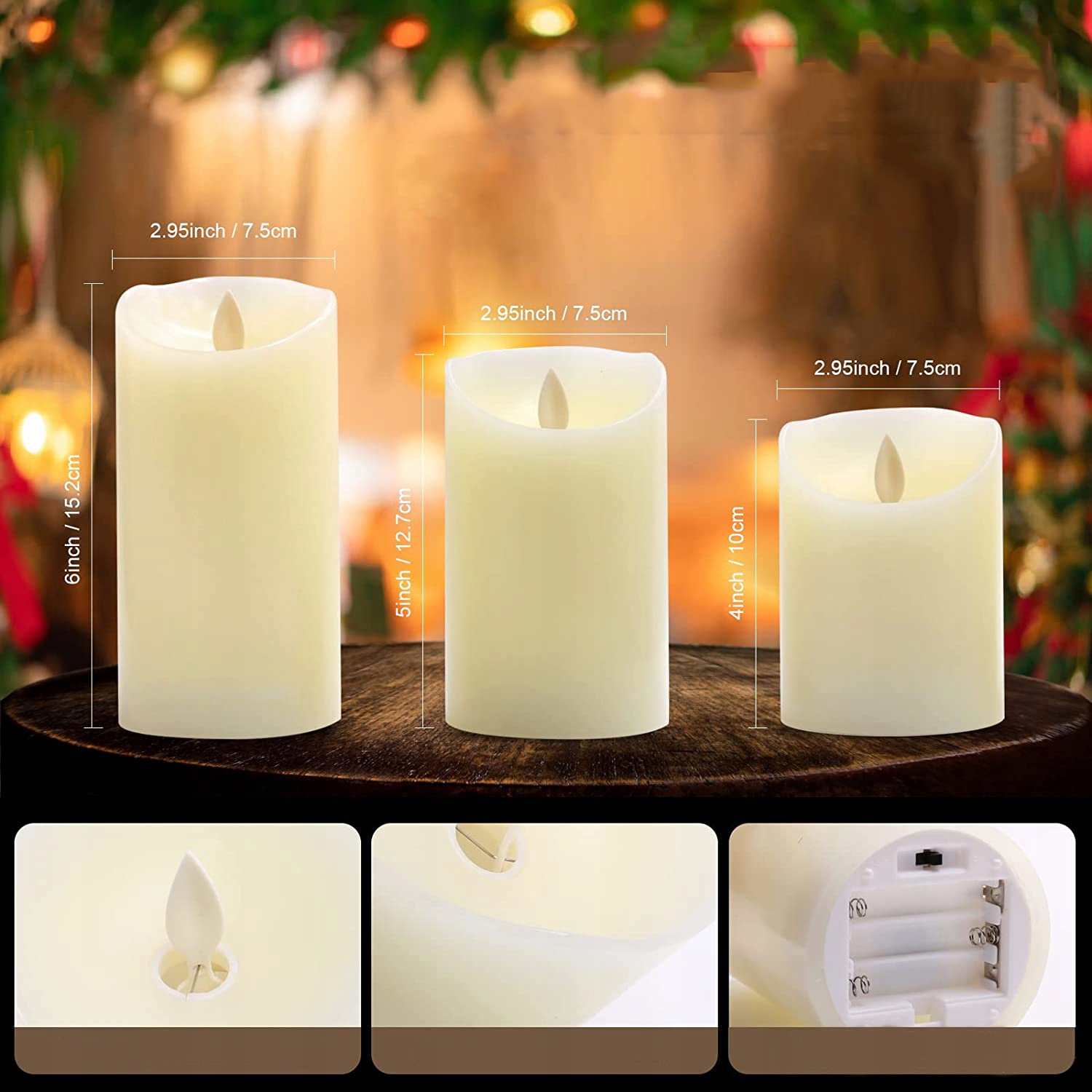 🕯️🕯️【Світлодіодні свічки та інформація про продукт】3 кольорові мерехтливі свічки зі справжнього воску кольору слонової кістки (розмір : 10 см/12,7 см/15,2 см), 1 пульт дистанційного керування. Батарейки НЕ входять.