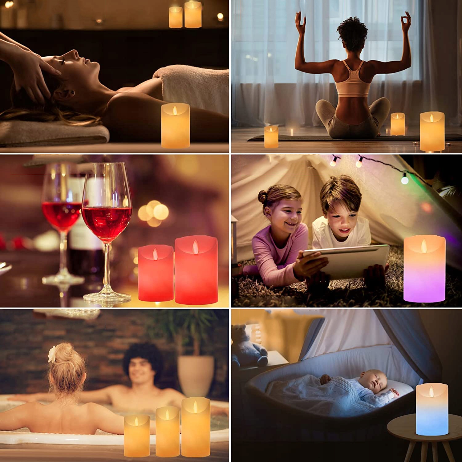 🕯️🕯️【Світлодіодні свічки з функцією таймера】Ці мерехтливі світлодіодні свічки виготовлені зі справжнього воску з реалістичним, постійно мерехтливим полум’ям, набагато вищої якості, ніж пластик. Використовувати як нічник. Ці декоративні свічки з рухомим ґнотом можна широко використовувати для святкування днів народження, Хеллоуїна, Рамадану та інших свят.