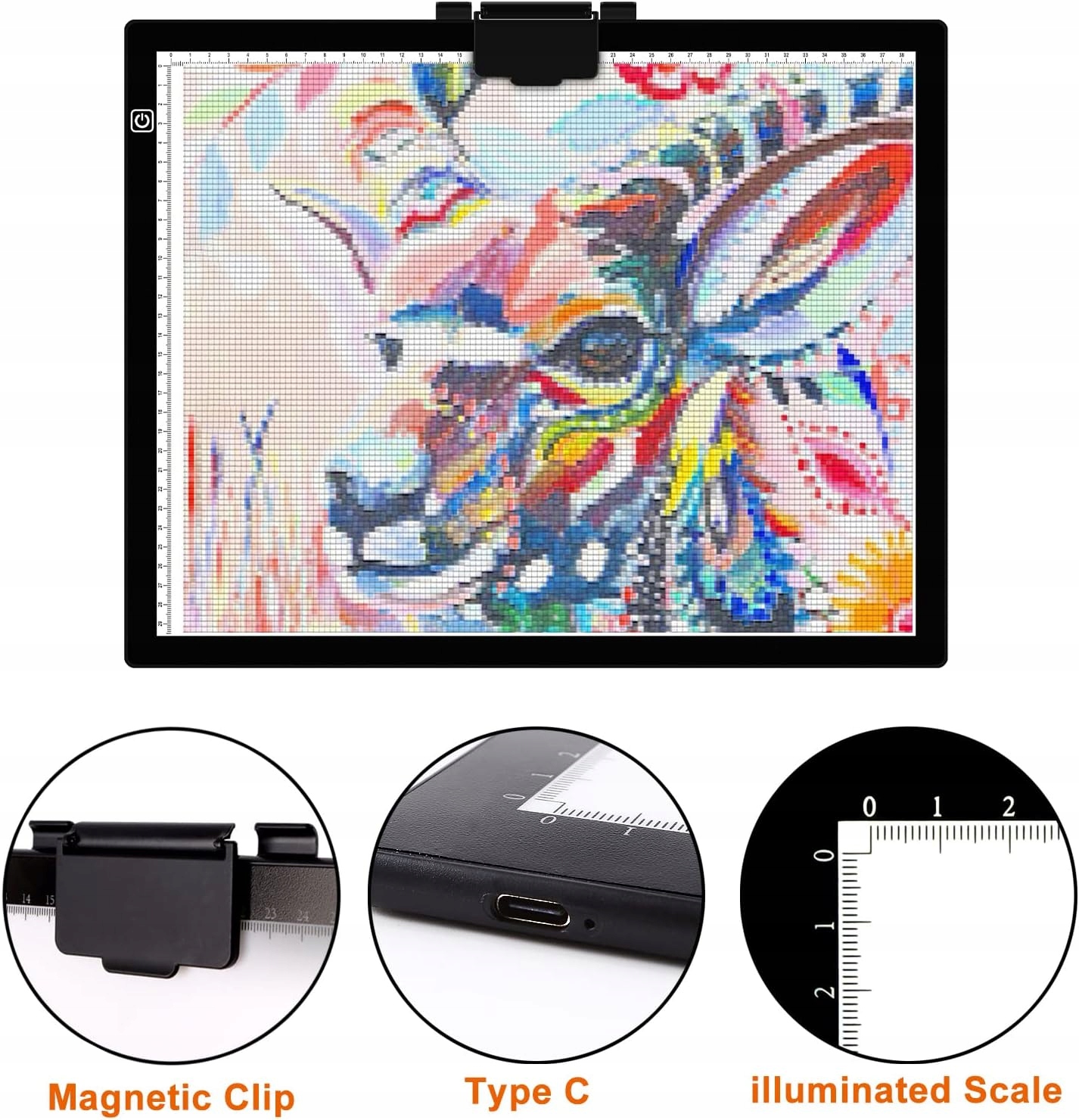 Світлодіодна дошка A3 від elice — це велика, портативна та дуже тонка підсвітка поверхня ідеально підходить для малювання, ескізів, алмазного малювання, анімації, каліграфії, татуювання та багатьох саморобних проектів.