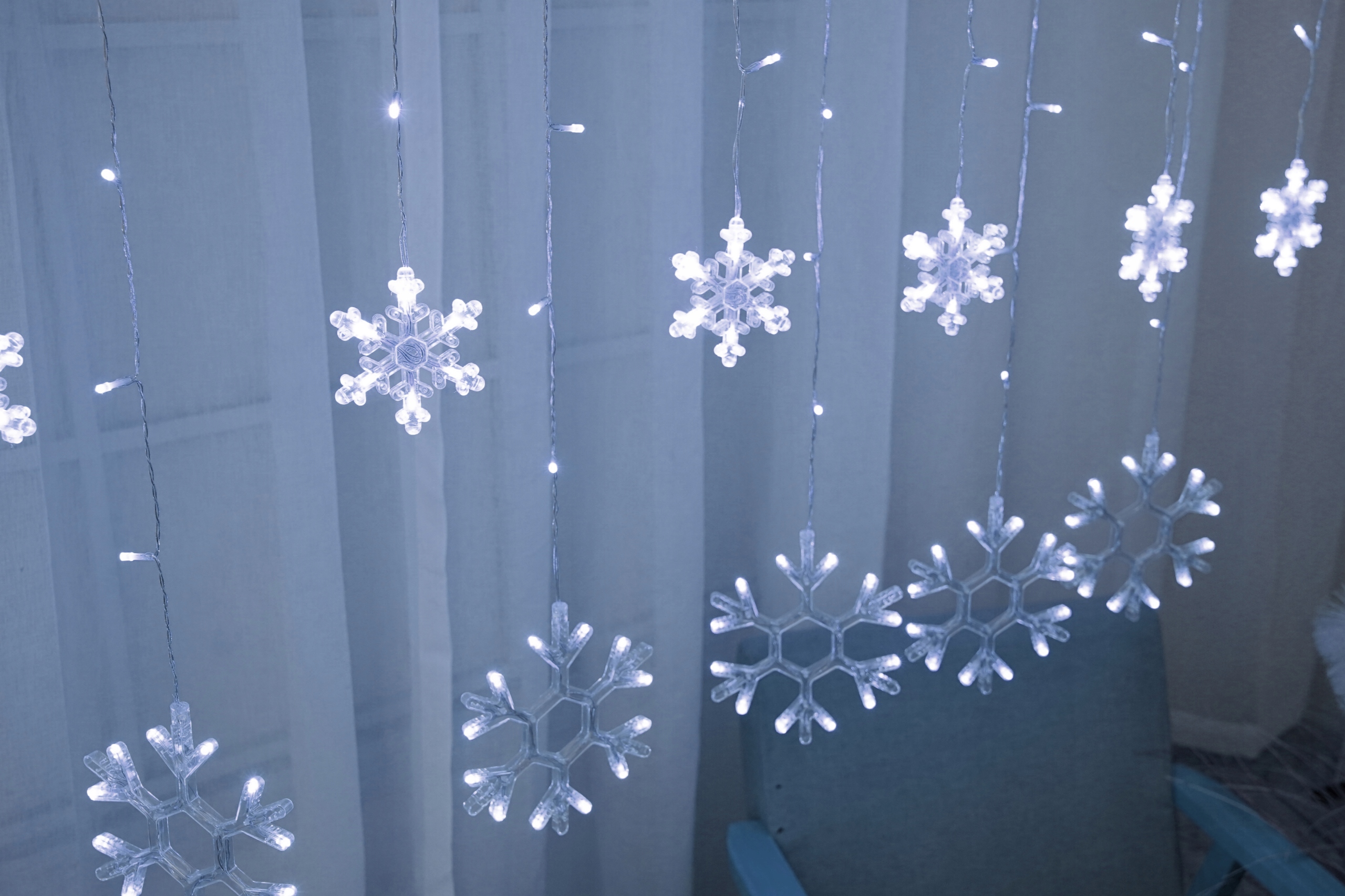 Світлодіодна світлова завіса з мотивом сніжинки, довжиною 5 метрів і з 8 функціями освітлення, є ідеальним способом створити чарівну та атмосферну атмосферу у вашому домі чи на вулиці. Ідеально підходить як прикраса на вікно, а також на балкон чи терасу.
