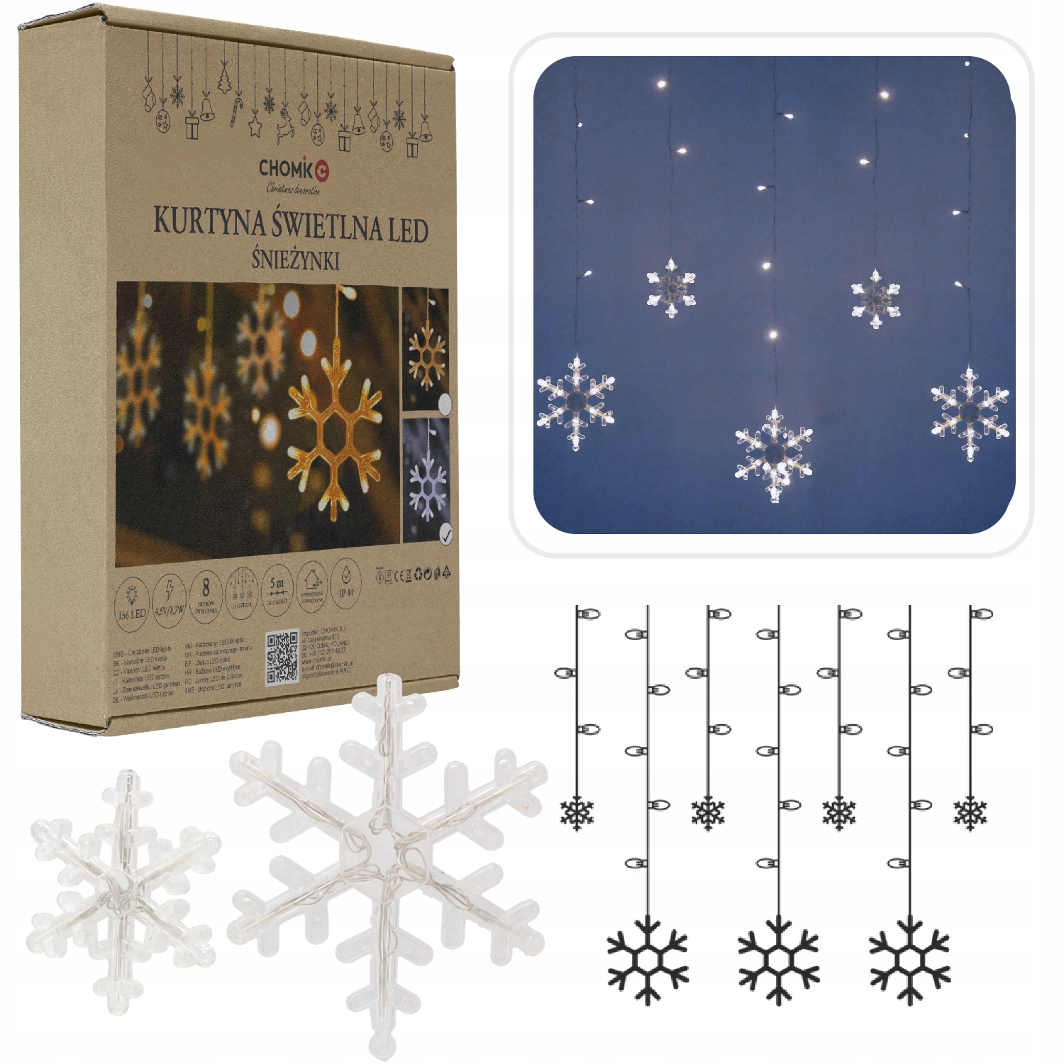 Світлодіодна СВІТЛОВА ЗАВІСА СНІЖИНКА 156LED 5М 8 РЕЖИМІВ СВІТЛЕННЯ ХОЛОДНИЙ БІЛИЙ