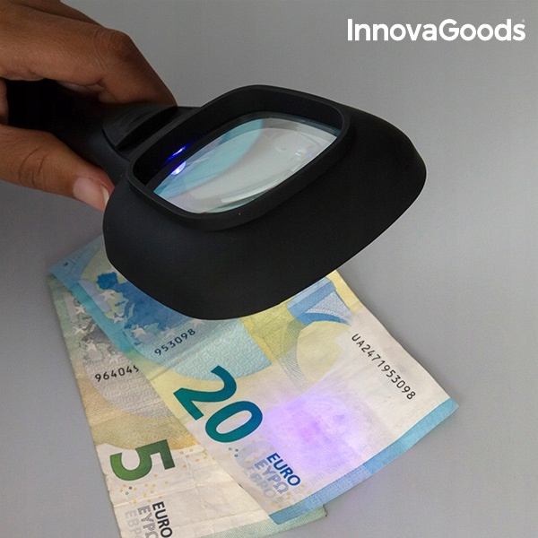 Збільшувальне скло зі світлодіодними та ультрафіолетовими діодами 3X InnovaGoods Gadget Tech. Ця багатофункціональна лупа ідеально підходить для точної роботи, виявлення фальшивих купюр, читання тексту дрібним шрифтом тощо.