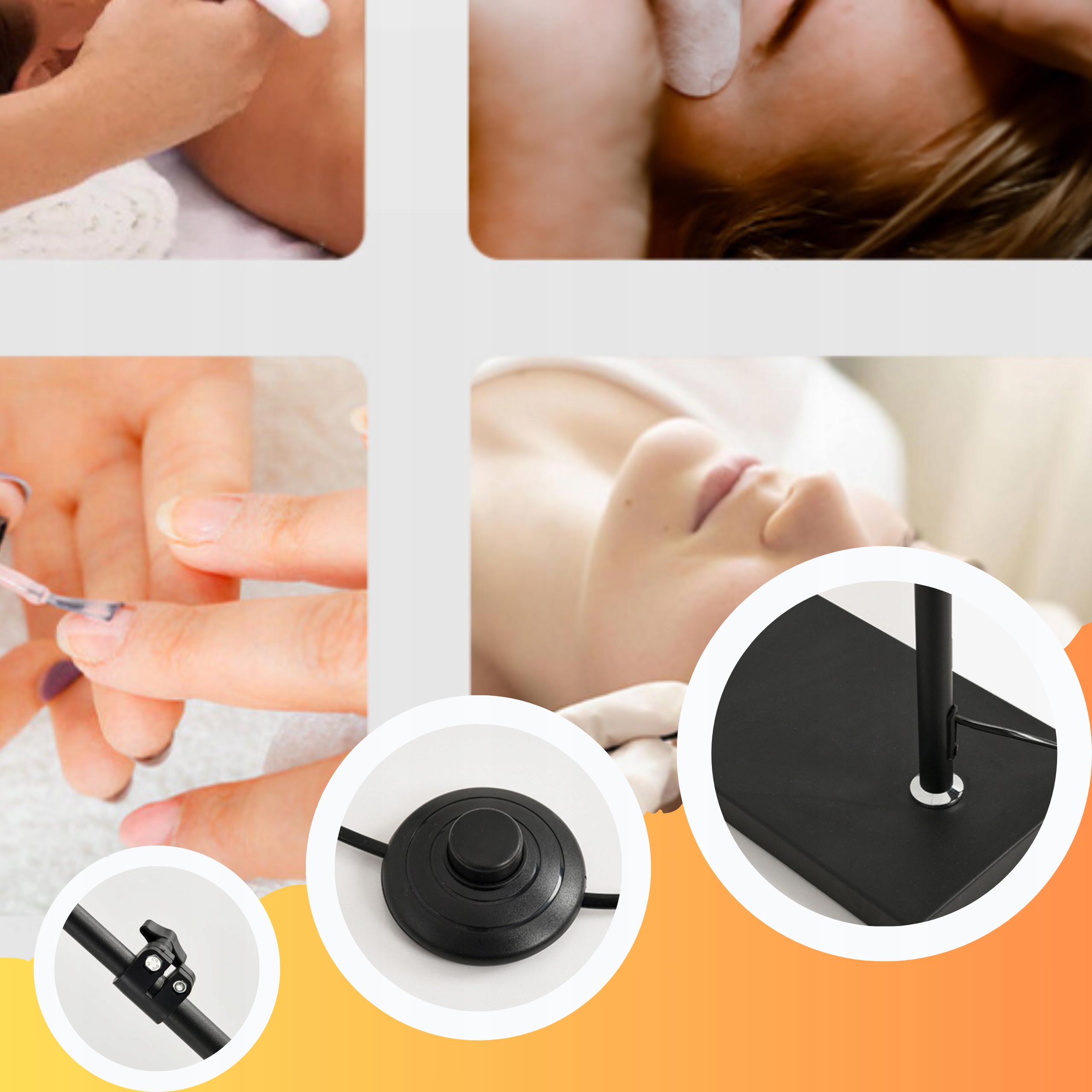 ✅ Зручна регульована по висоті ніжка: лампа розміщена на стійкій регульованій по висоті ніжці. Ви можете відрегулювати його положення, щоб отримати найкраще положення для виконання косметичних процедур.