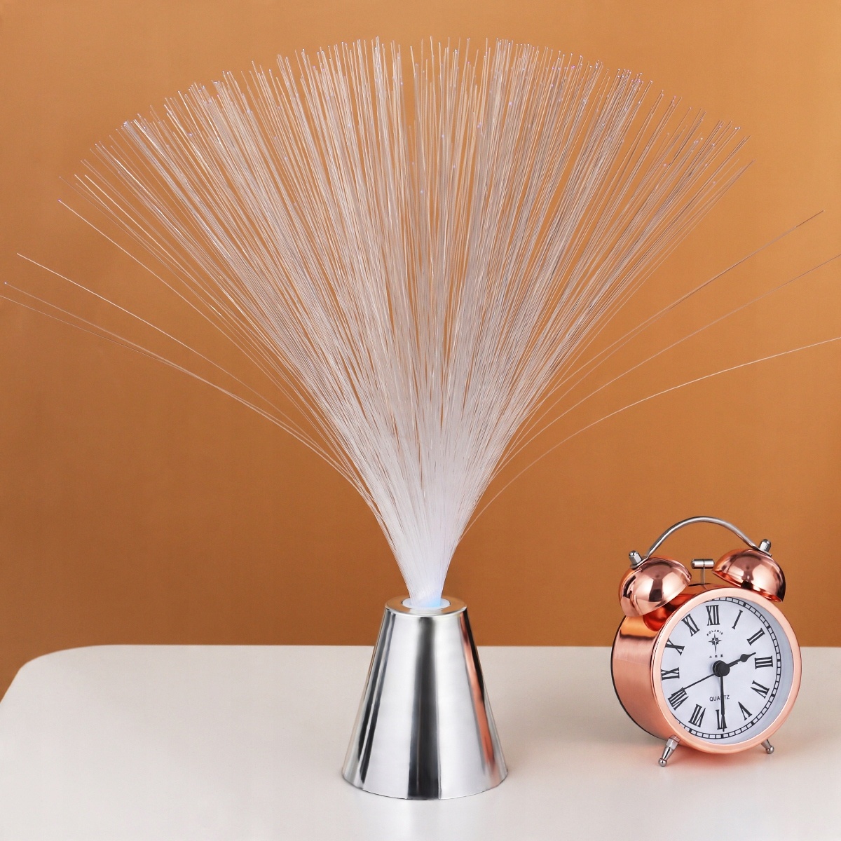 Це фантастична оптоволоконна лампа для фонтану, живиться від 3 батарейок AAA, розміщена на основі сріблястого АБС-пластику та забезпечує розслаблюючий ефект зміни кольору. Виготовлений з декоративного матеріалу, який не забруднює світло. 3 червоних, синіх і зелених світлодіода по черзі горять і створюють романтичну, теплу і солодку атмосферу. Легкий, зручний і безпечний у використанні, енергозберігаючий. Перетворіть і прикрасьте свій обідній стіл, спальню, вечірку за допомогою цього дивовижного оптоволоконного світильника.