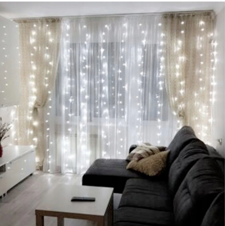 Лампи - світлодіодна світлова завіса З ВЕЛИКОЮ КІЛЬКІСТЬЮ СТРУН холодного білого кольору, розміром світильника 2х2 м. + ПУЛЬТ.