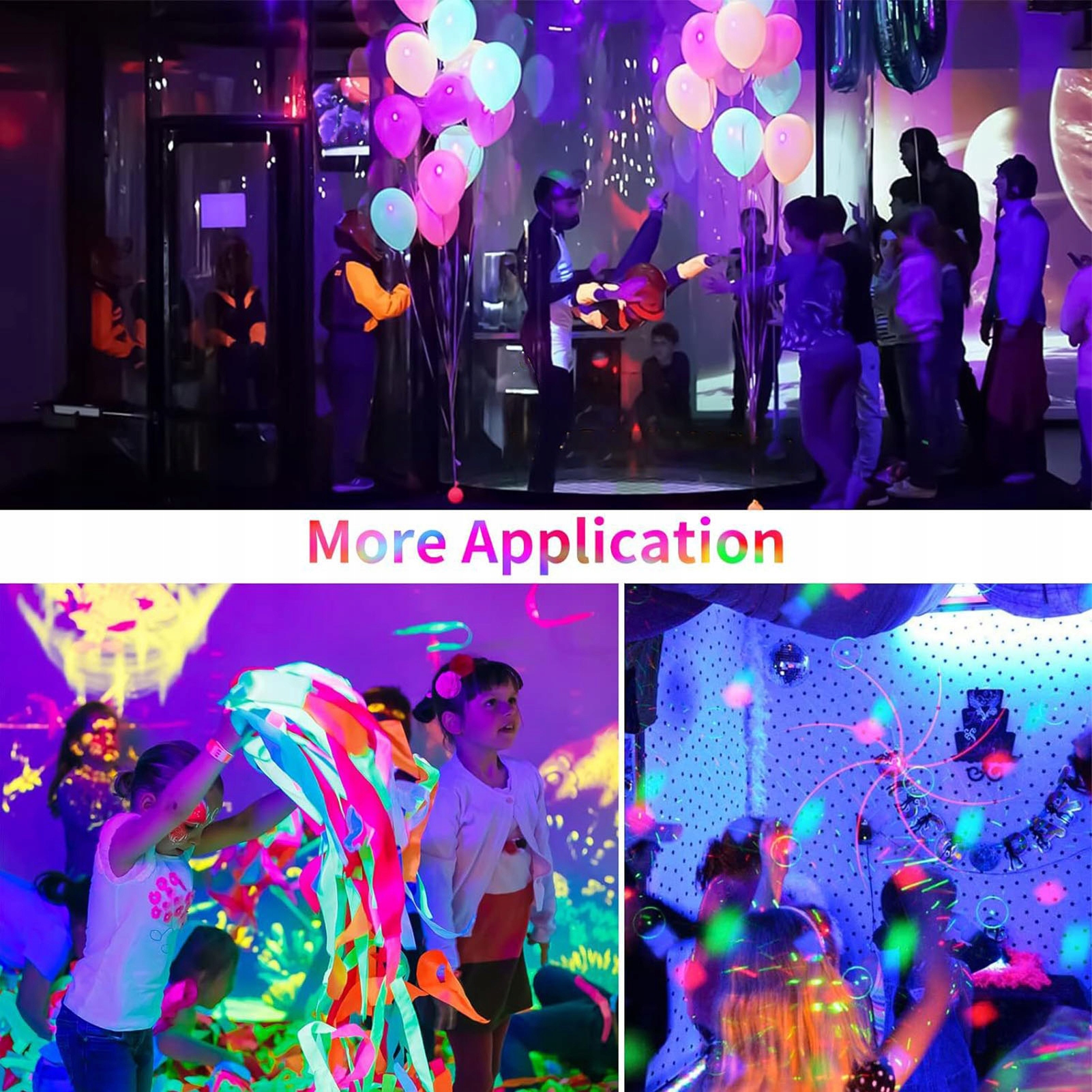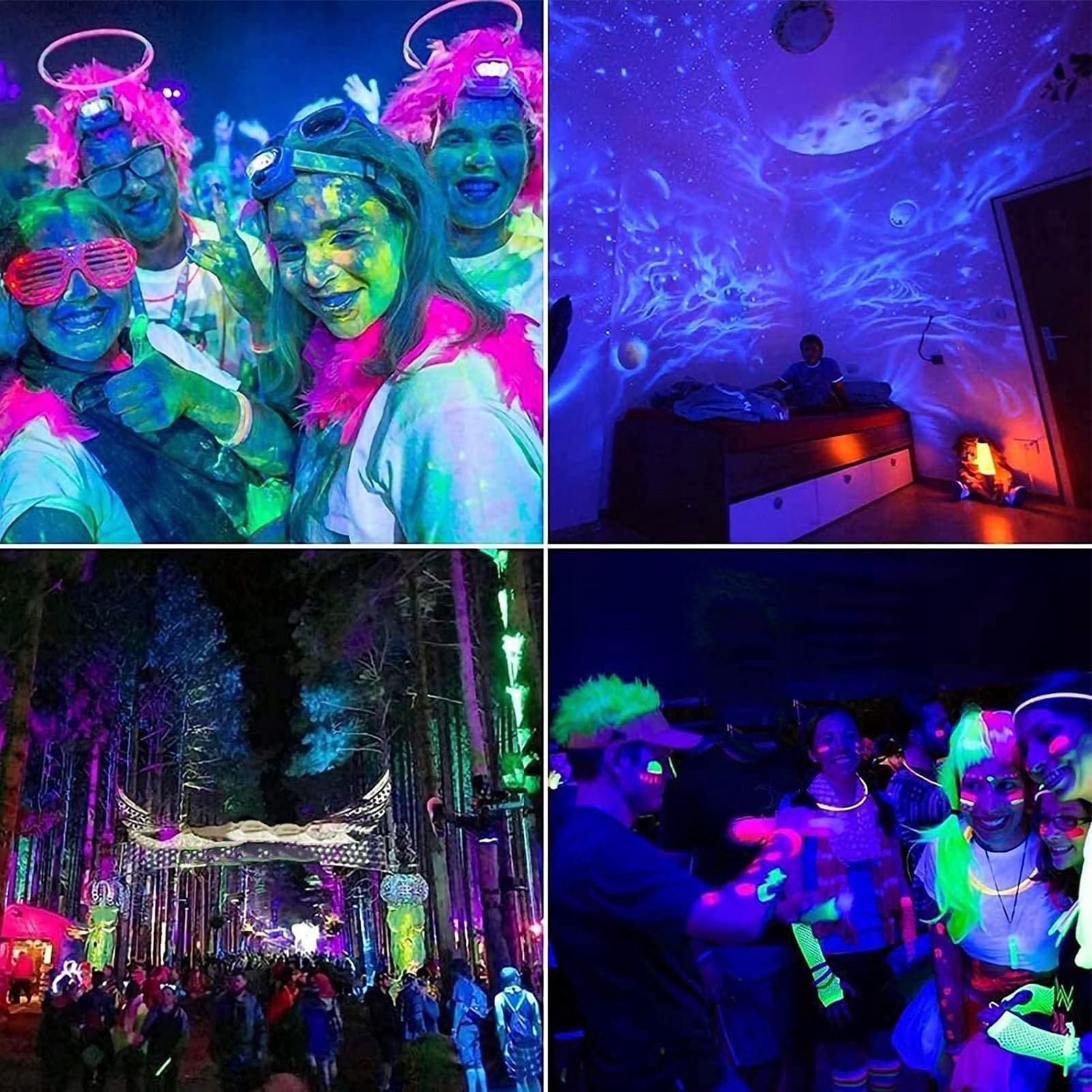3. Безпека УФ -освітлення: випромінювання невидимого чорного ультрафіолетового світла, яке безпечне для людських очей, створюючи спеціальні освітлювальні ефекти для флуоресцентних реагентів, сяючих матеріалів тощо, незадоволеним людським тілом і очам, що робить їх ідеальними для створення атмосфери.