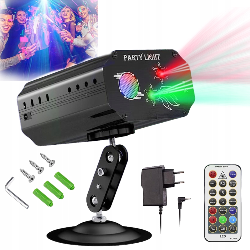 - Дискотечне освітлення складається з 6 кольорів (червоний/зелений/синій/рожевий/світло-блакитний/помаранчевий) і 24 різних візерунків, які забезпечують більш виразний ефект порівняно зі звичайними вечірковими вогнями без жодних розмиття.