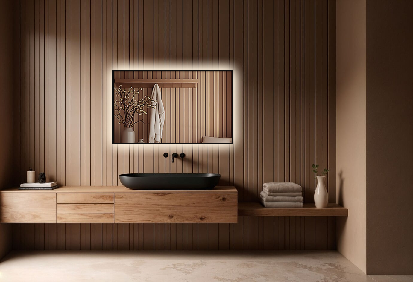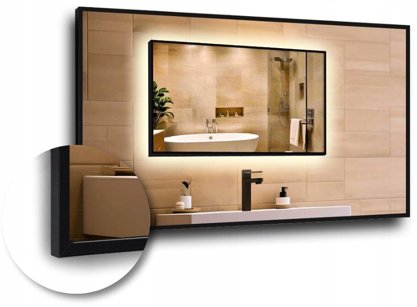 Світлодіодне дзеркало 100х80 в чорному алюмінієвому каркасі водонепроникні світлодіоди