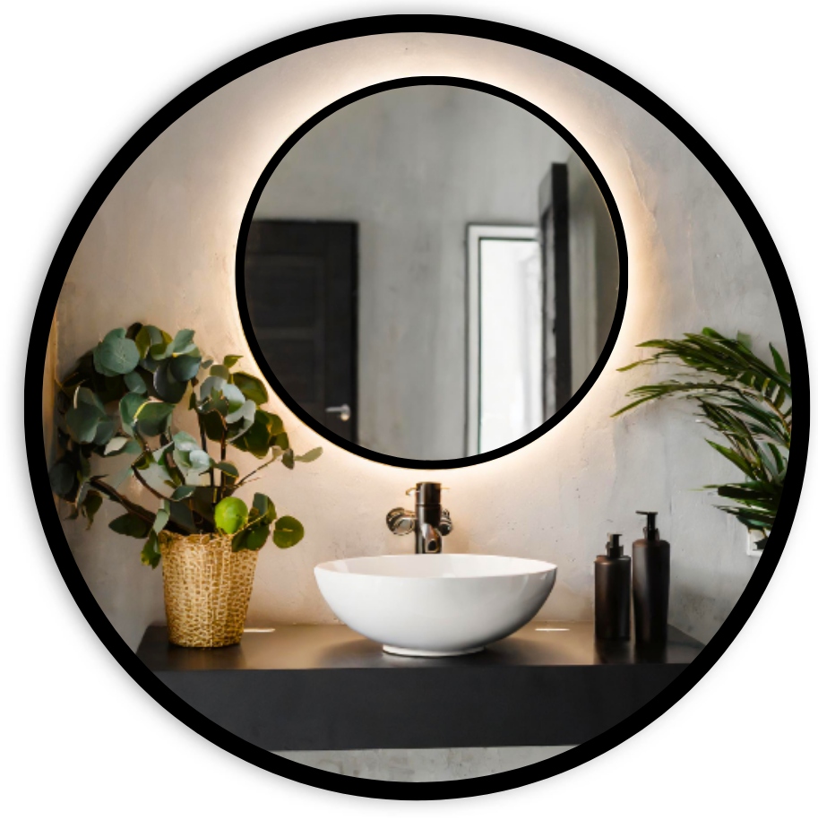 СВІТЛОДІОДНЕ ДЗЕРКАЛО 40 КРУГЛА ЧОРНА РАМА З ПІДСВІЧЕННЯМ ЛОФТ ВАННА ЛОФТ КОЛО