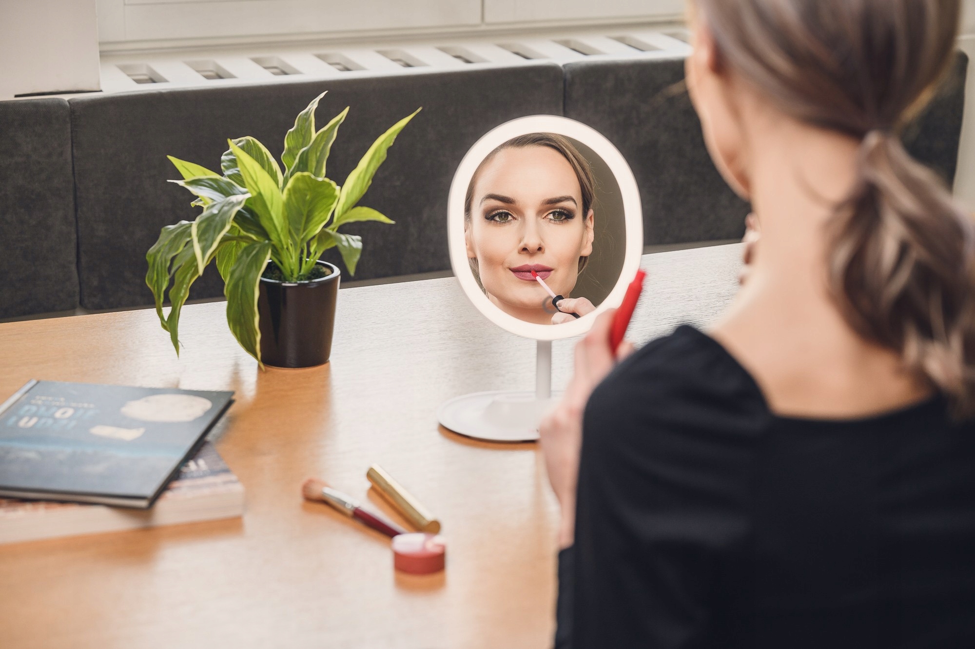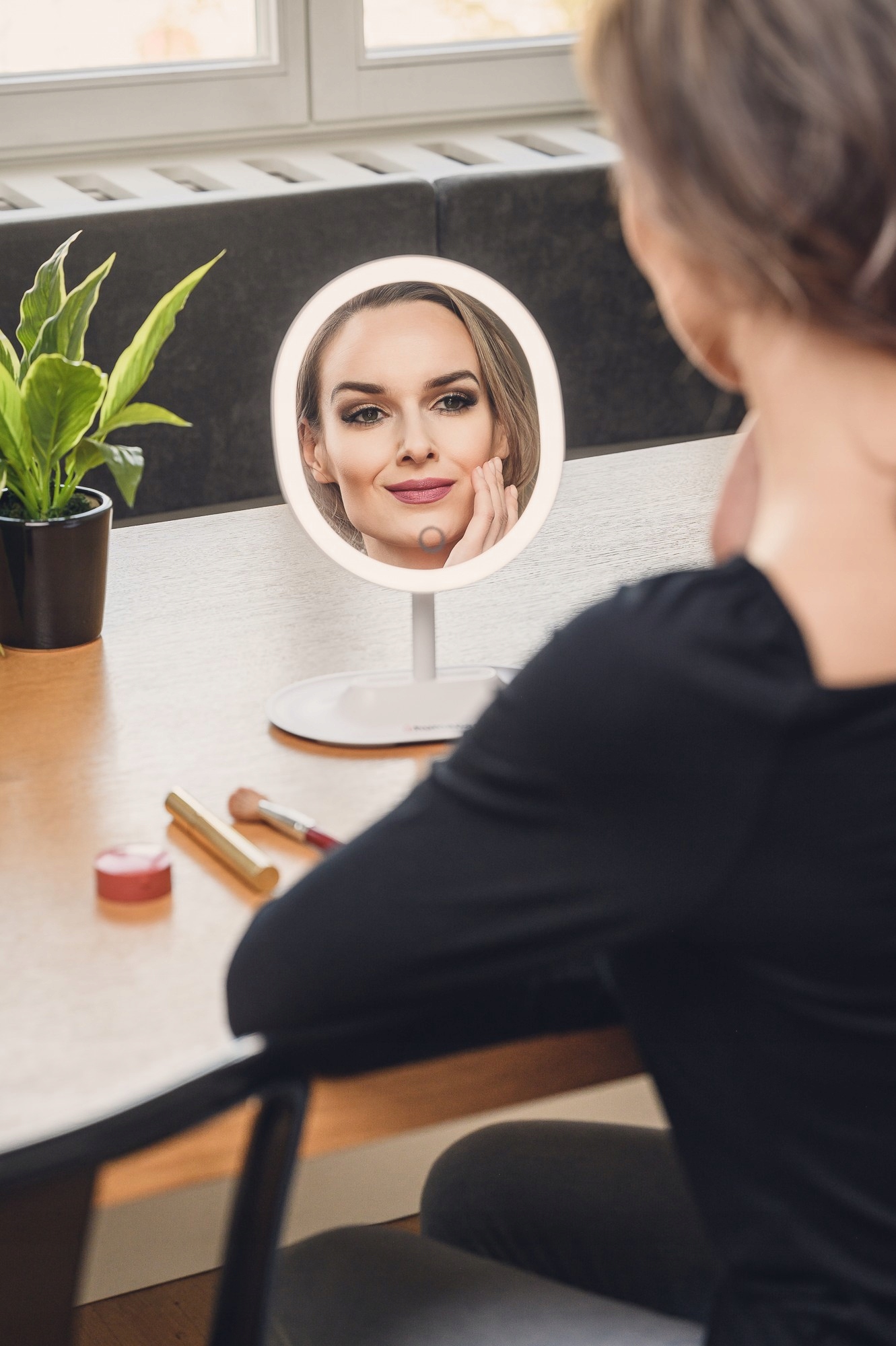 Ергономічне розташування навколо дзеркала є перевіреним способом досягнення ідеального макіяжу. Розчин, яким роками користуються професіонали, добре підійде і під час домашніх косметичних процедур. Світлодіоди, приховані під молочним матеріалом, гарантують рівномірне та м'яке освітлення обличчя.