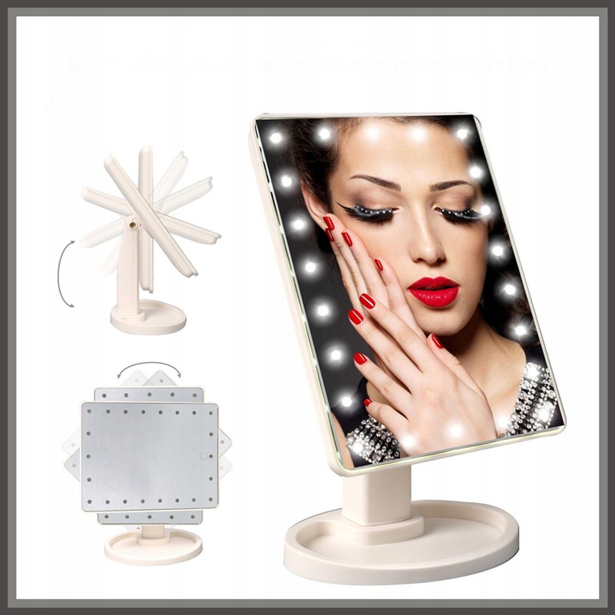 "Дзеркало з 22 світлодіодними підсвічуваннями - необхідний гаджет для ідеального макіяжу. Регульований нахил, інтенсивність освітлення, стабільність - усе це робить ваш щоденний догляд простішим і зручнішим."