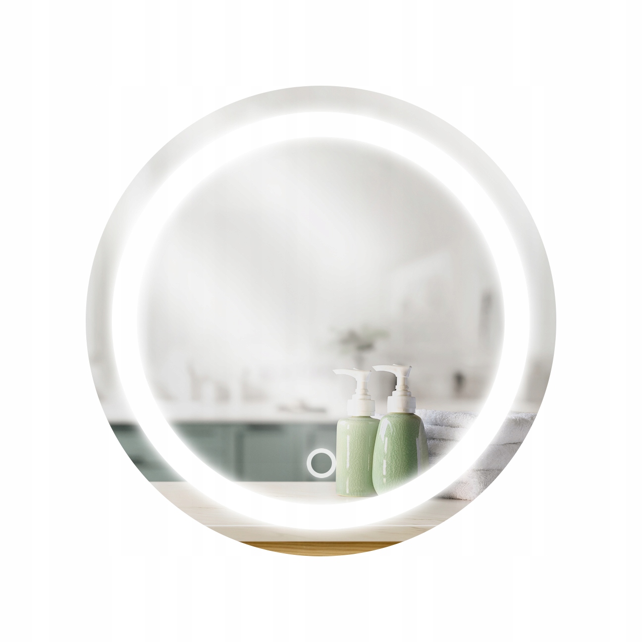 Сучасне кругле дзеркало з LED підсвічуванням, Fi 80см, з сенсорним вимикачем, виготовлене з високоякісного скла товщиною 4мм. Поліровані та відшліфовані краї.