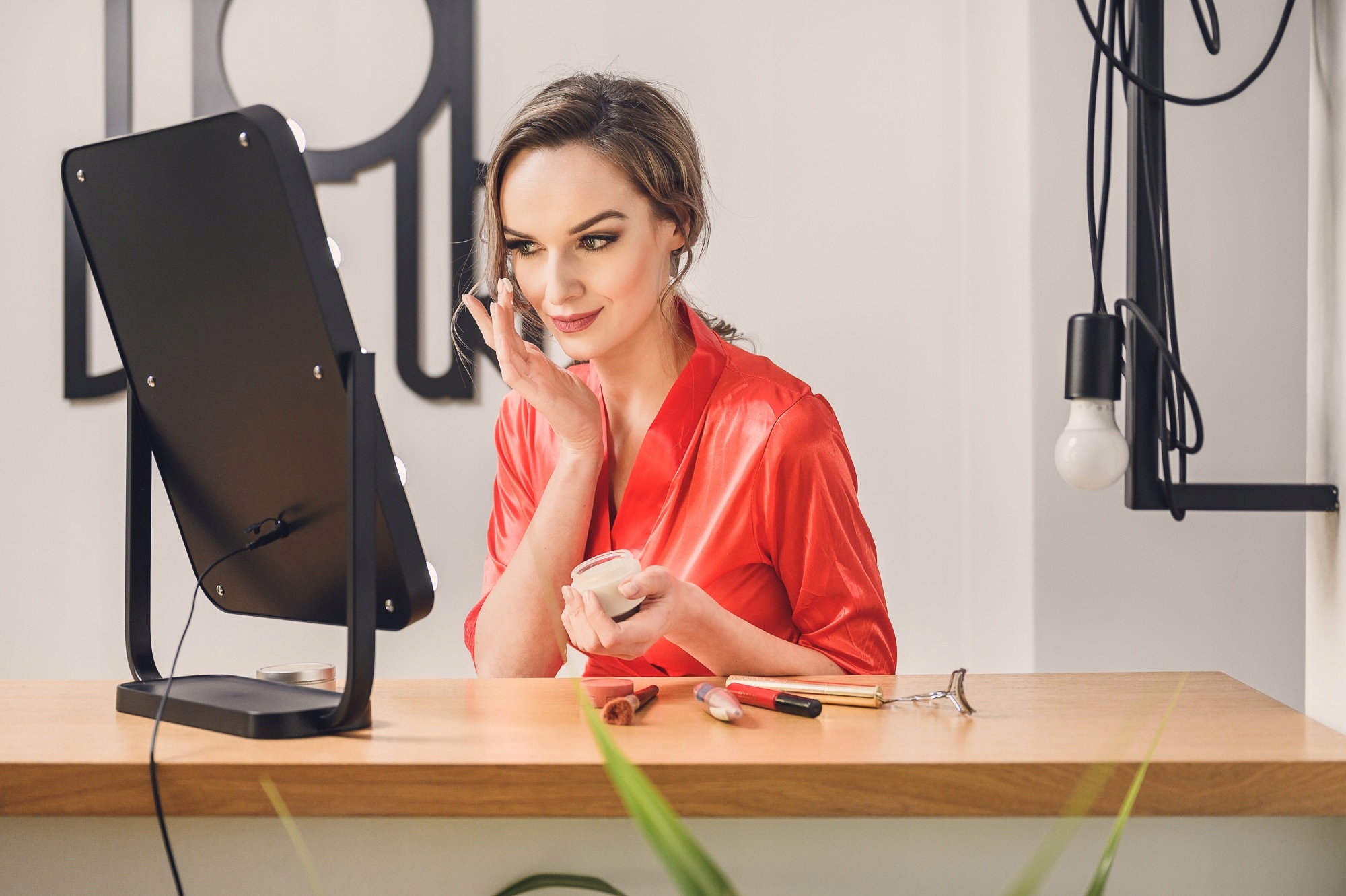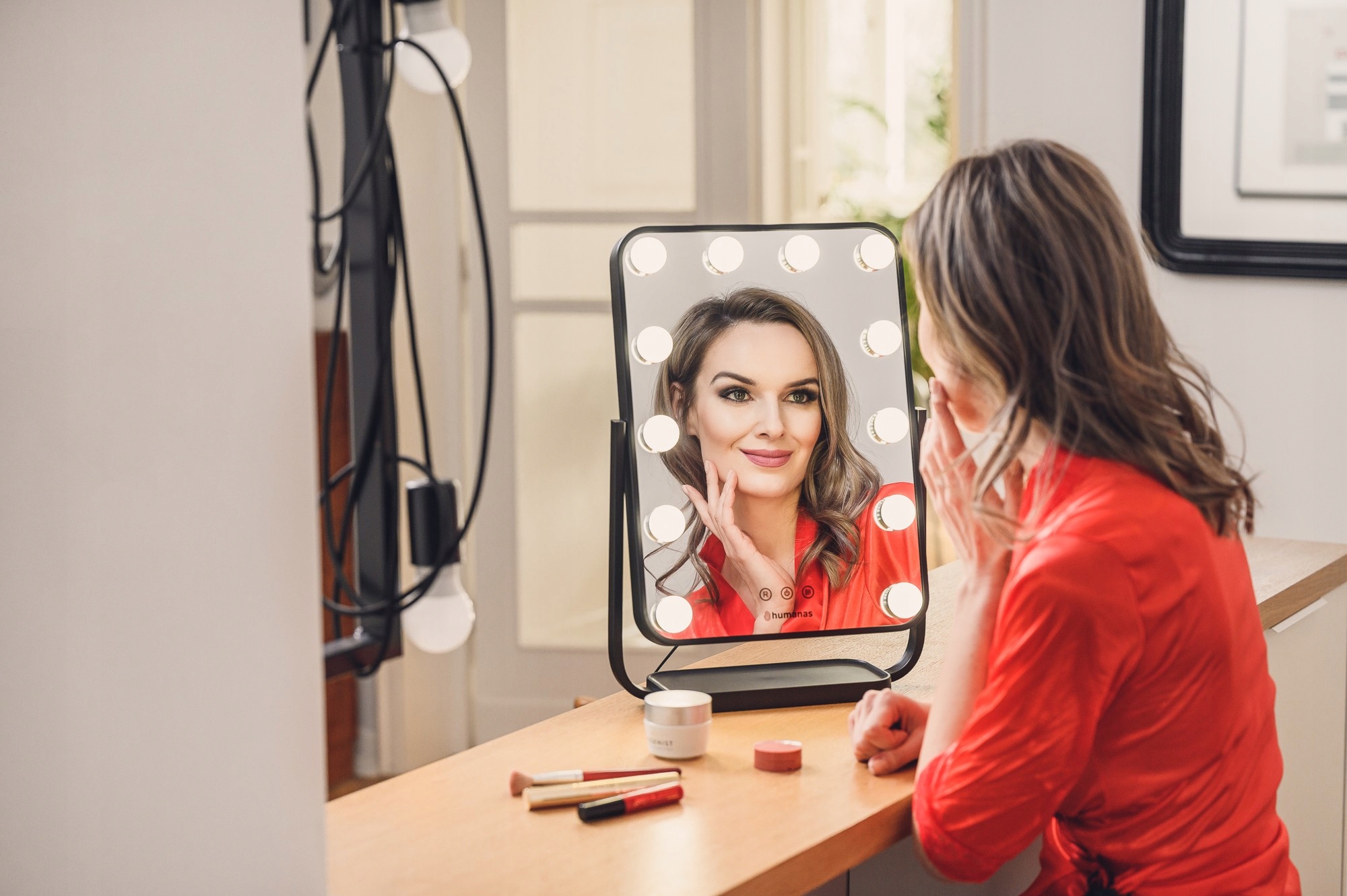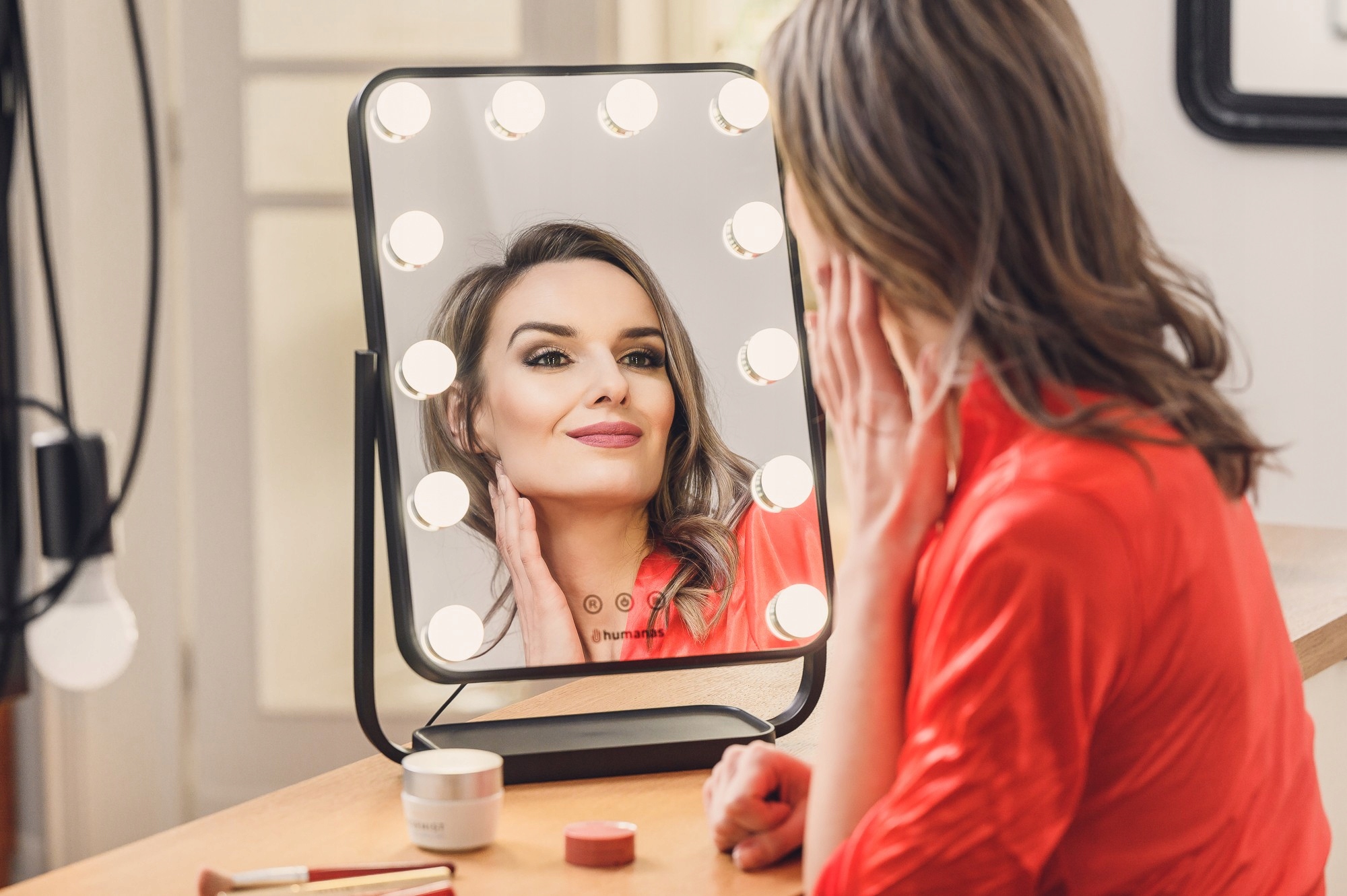 Велике елегантне дзеркало Humanas HS-HM01, оснащене 12 енергозберігаючими світлодіодами, полегшить нанесення щоденного чи вечірнього макіяжу. Для кожного візажиста важливо правильно підібрати освітлення. Тепер ви теж можете відчути себе професіоналом у домашньому салоні краси. Дзеркало оснащене сенсорною панеллю, яка дозволяє регулювати потужність і колірну температуру світла.