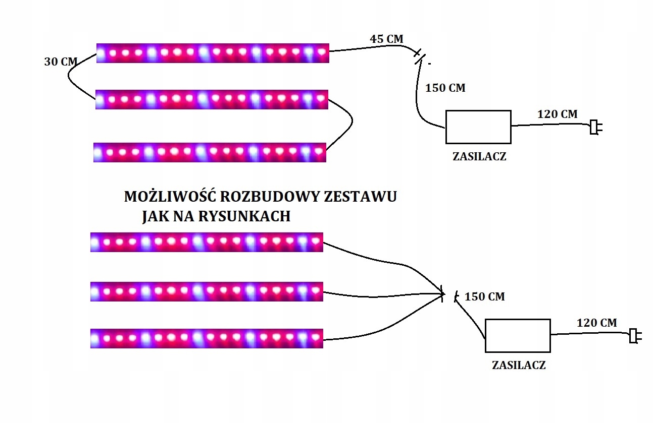 świetlówka Ledowa 50 см. З джерелом живлення та ручками, готовим до складання
