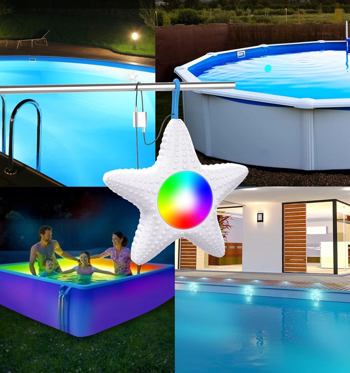 【Багатокольорові світлодіодні ліхтарі для басейну 】Ліхтар для басейну може відтворювати мільйони яскравих кольорів, 3 режими (режим згасання/стробоскоп/режим м’якого світла), 5 рівнів яскравості, щоб регулювати вашу потребу створити кілька атмосфер. Ідеально підходить для дорослих і дітей, щоб насолоджуватися легкою вечіркою.