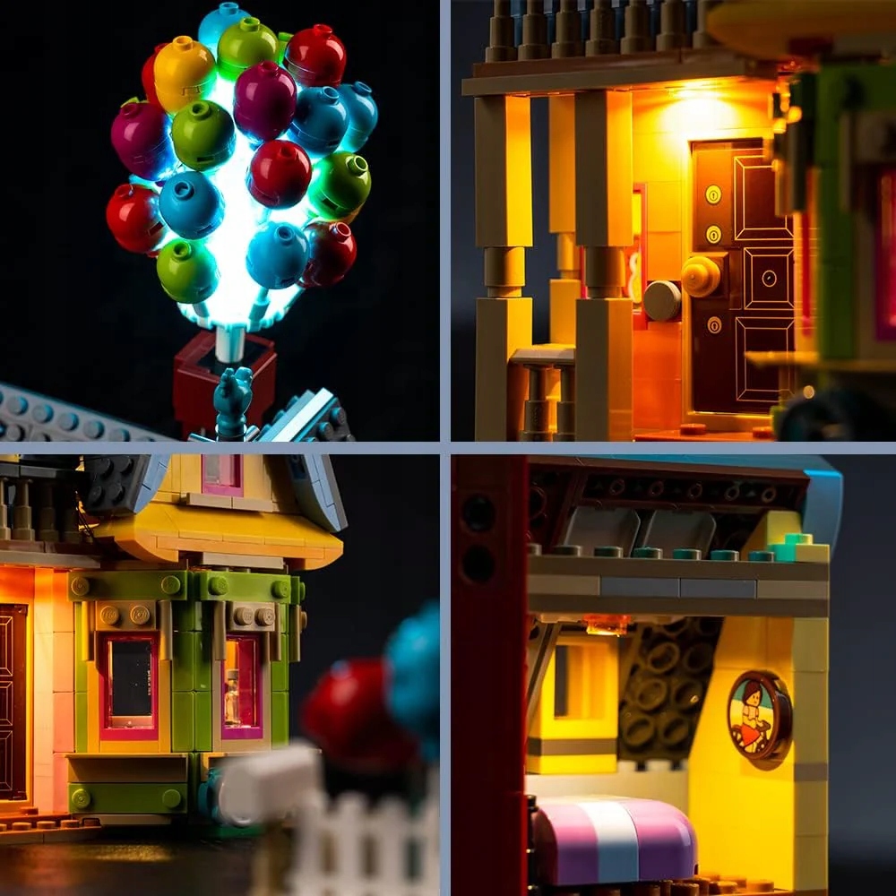 - Підсвічування моделі LEGO Disney та Pixar UP House 43217 — світлодіоди підкреслюють деталі повітряних куль, вікон та архітектури будинку.