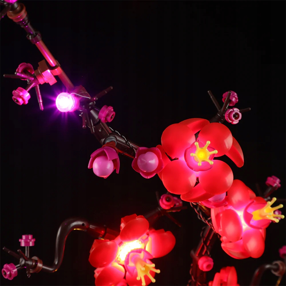 - Підсвічування моделі Plum Blossom 10369 - світлодіоди підкреслюють форму гілок і деталі квітів, підкреслюючи художній характер виробу. структура.