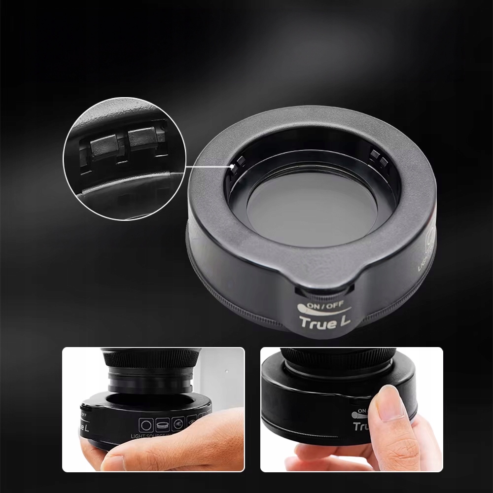 techrebal true l з поляризацією - це професійна світлодіодна кільцева лампа, яка пропонує компактну конструкцію та можливість регулювати поляризаційний потік та інтенсивність світла. Завдяки 40 світлодіодам та живленню USB, він забезпечує рівномірне освітлення та усуває відбиття, що робить його ідеальним для точних фотографічних та технічних завдань. Пристрій підходить до лінзи діаметром 55 мм, що збільшує його універсальність.