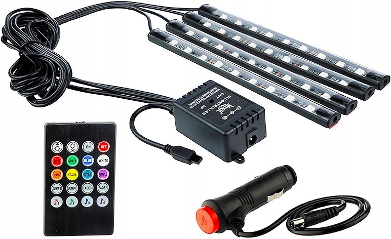 СВІТЛОДІОДНЕ ОСВІТЛЕННЯ САЛОНУ КОЛЬОРОВА СВІТЛОДІОДНА СТРІЧКА ДЛЯ АВТОМОБІЛЯ З ПУЛЬТОМ 12В