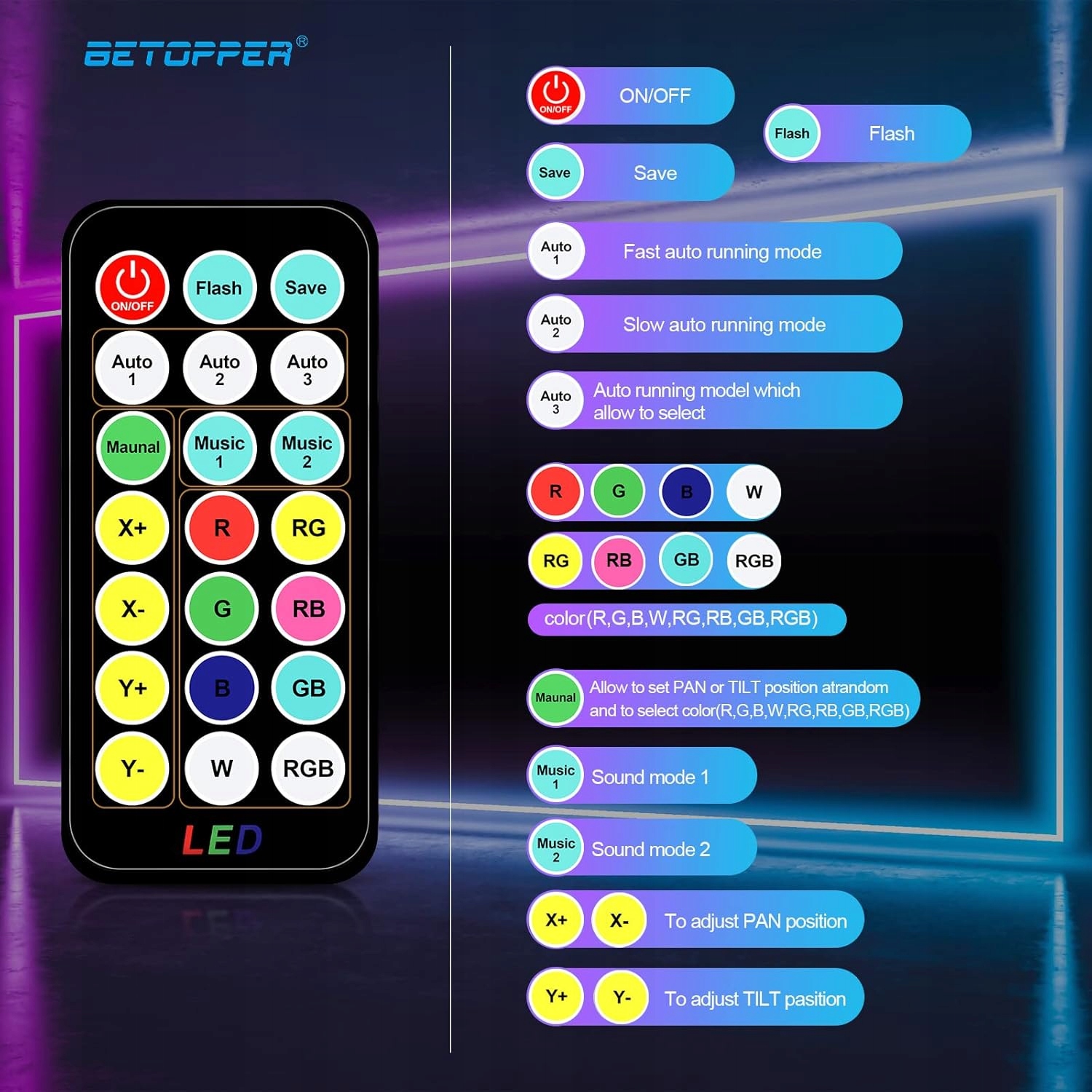 - ♬ 【Змішування кольорів RGBW】Колір RGB може змінюватися відповідно до думки, колір змінюється плавно, голова рухається плавно, швидка відповідь стробоскопа інтенсивна. Додайте цю рухому голову до свого світлового шоу.