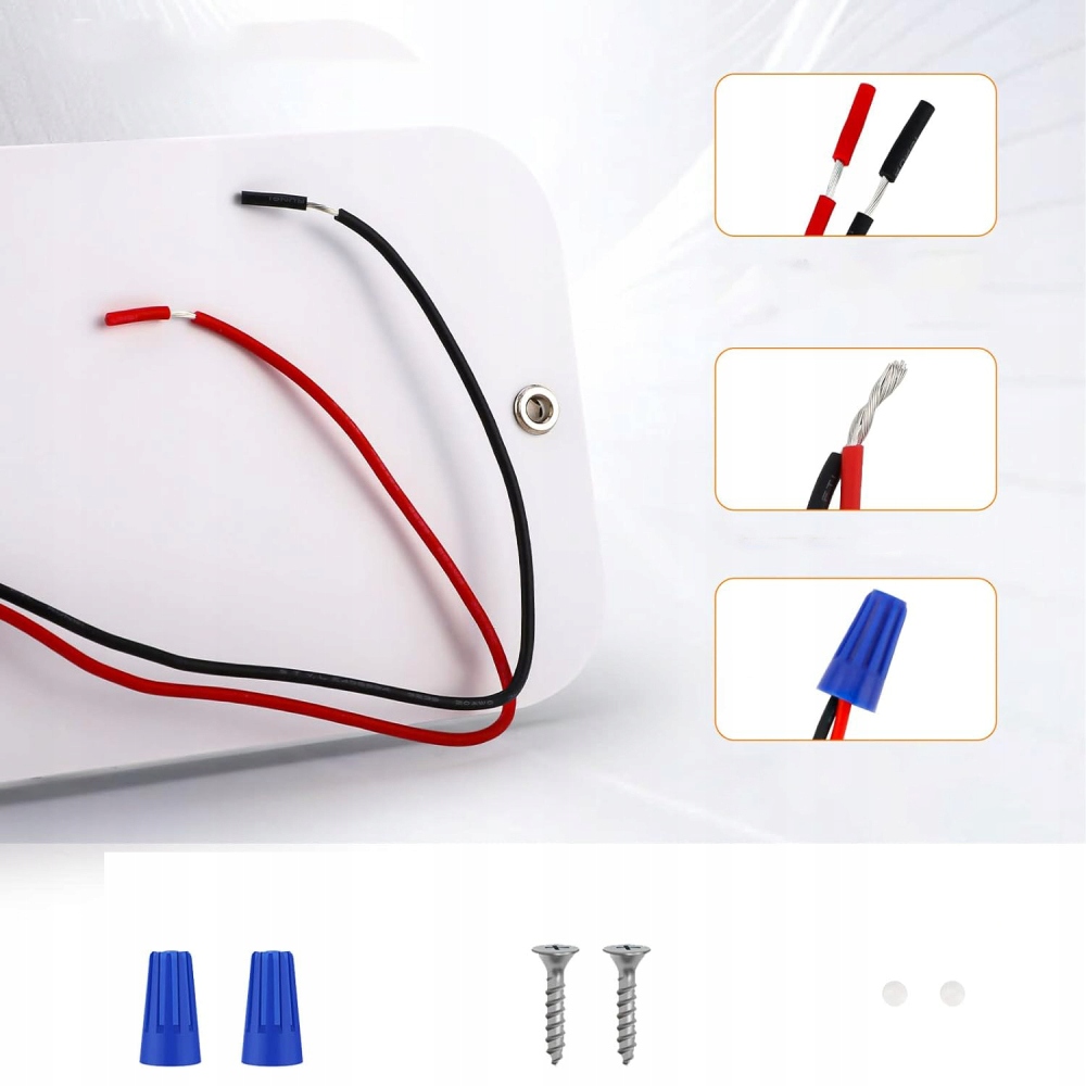 - - Використовує дроти без полярність, а проводка проста. Просто під’єднайте шнур живлення до шнура лампи (без позитивних або негативних полюсів), скрутіть і затягніть дроти, а потім вставте затягнуті дроти в дротовий ковпачок.